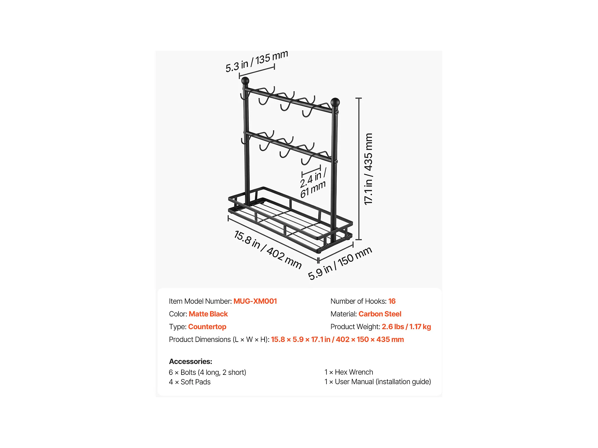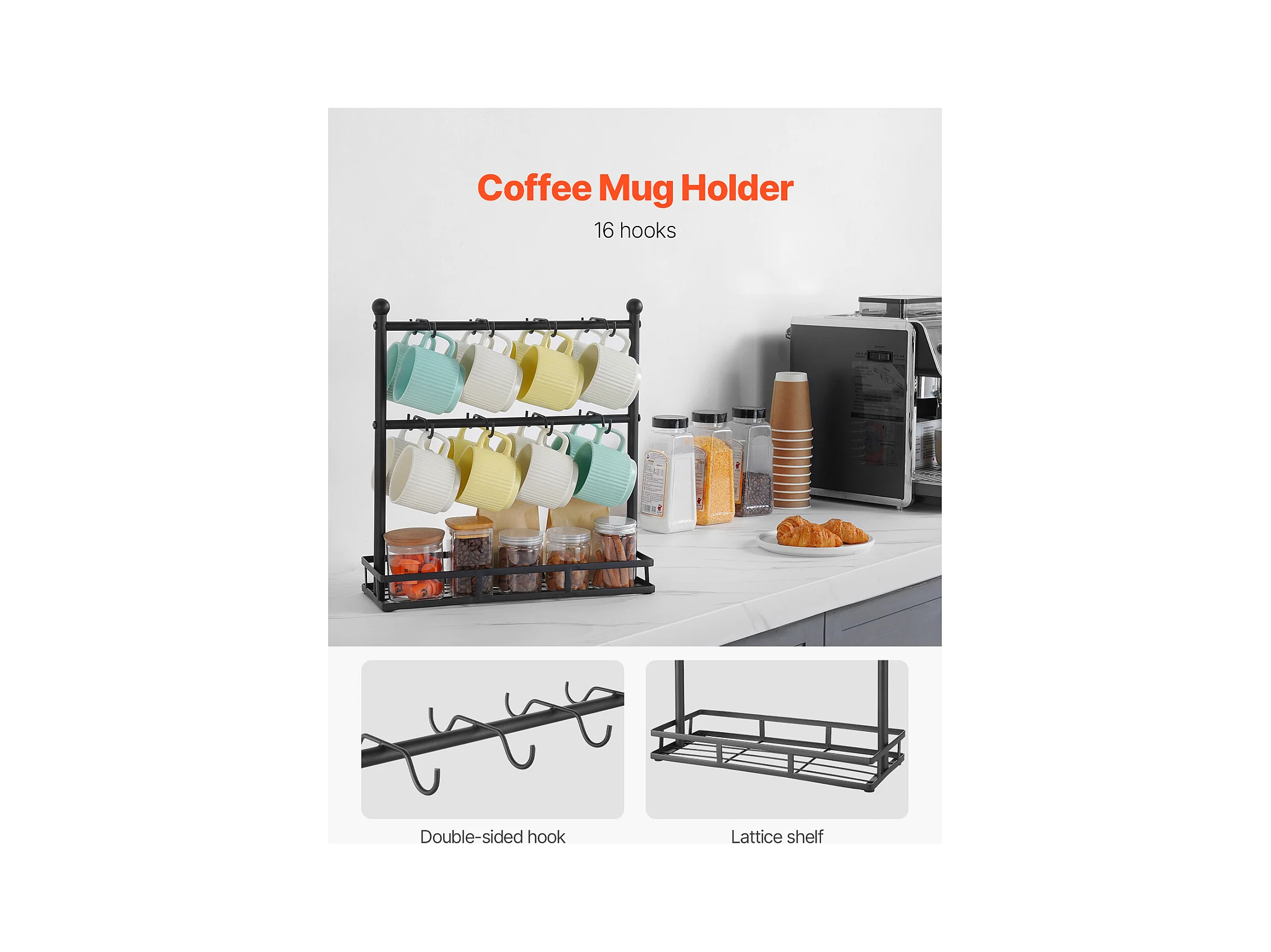 Porte-Tasse SucceBuy à Café pour Comptoir, Support de Tasse à 16 Crochets avec Organisateur de Base de Rangement