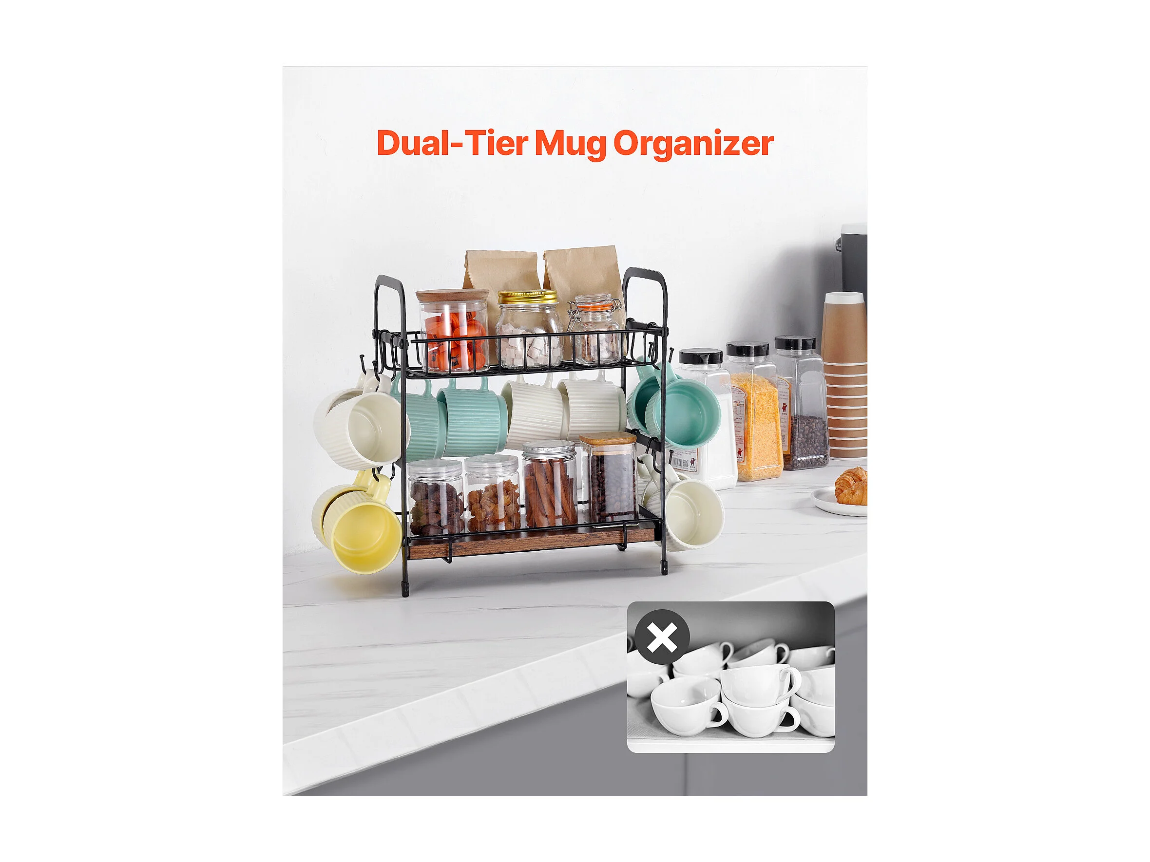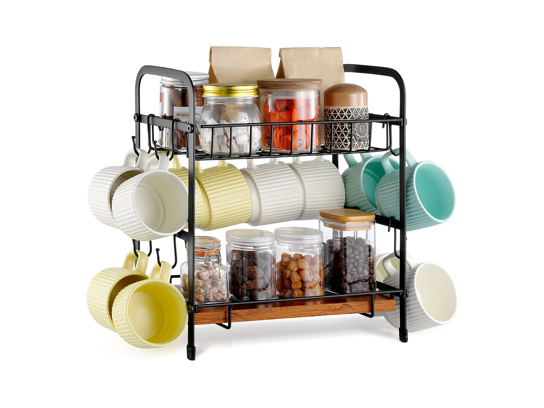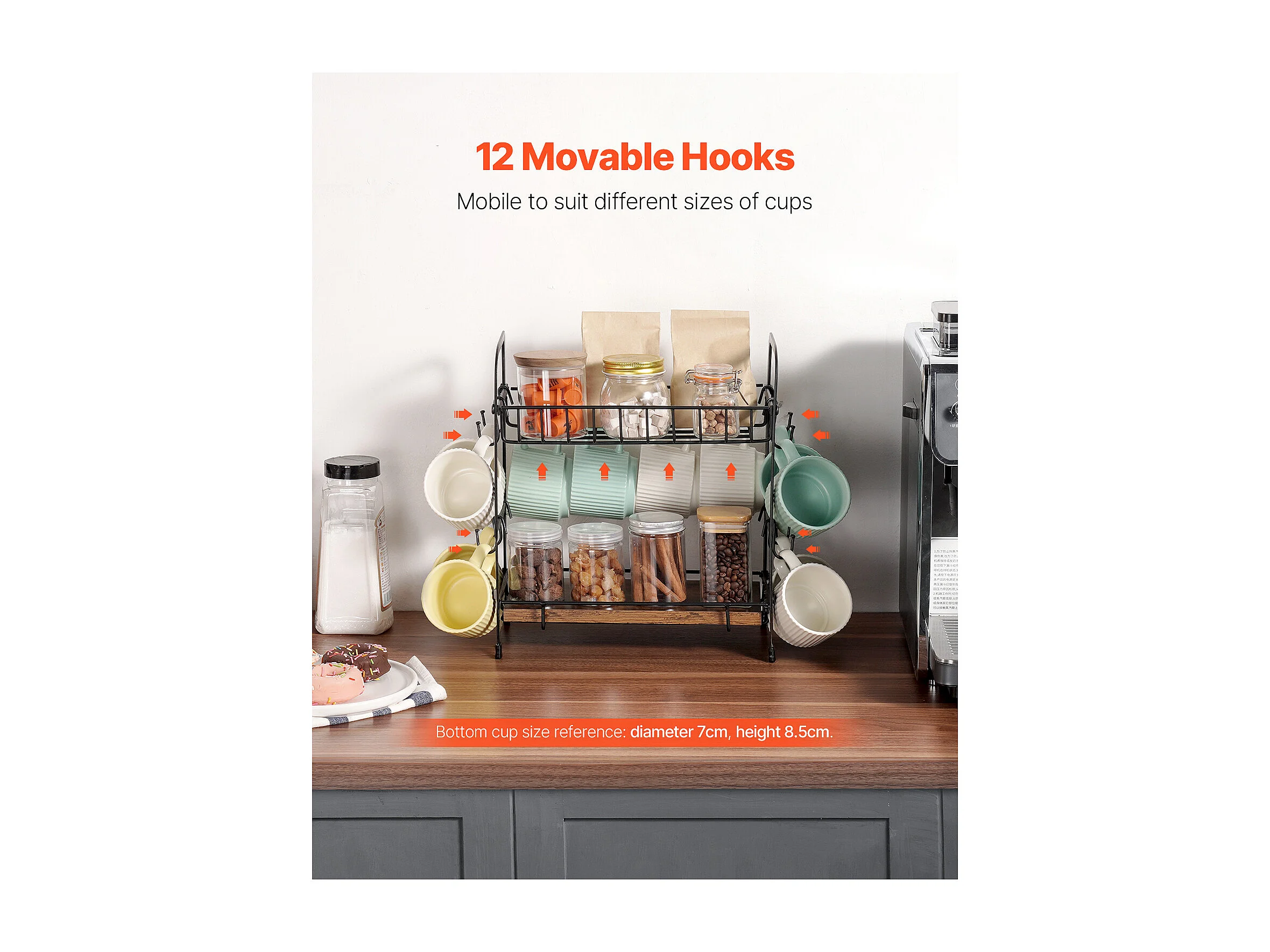 Porte-Tasses SucceBuy Organisateur de Bar à Café à 2 Niveaux pour Comptoir, 12 Crochets Mobiles