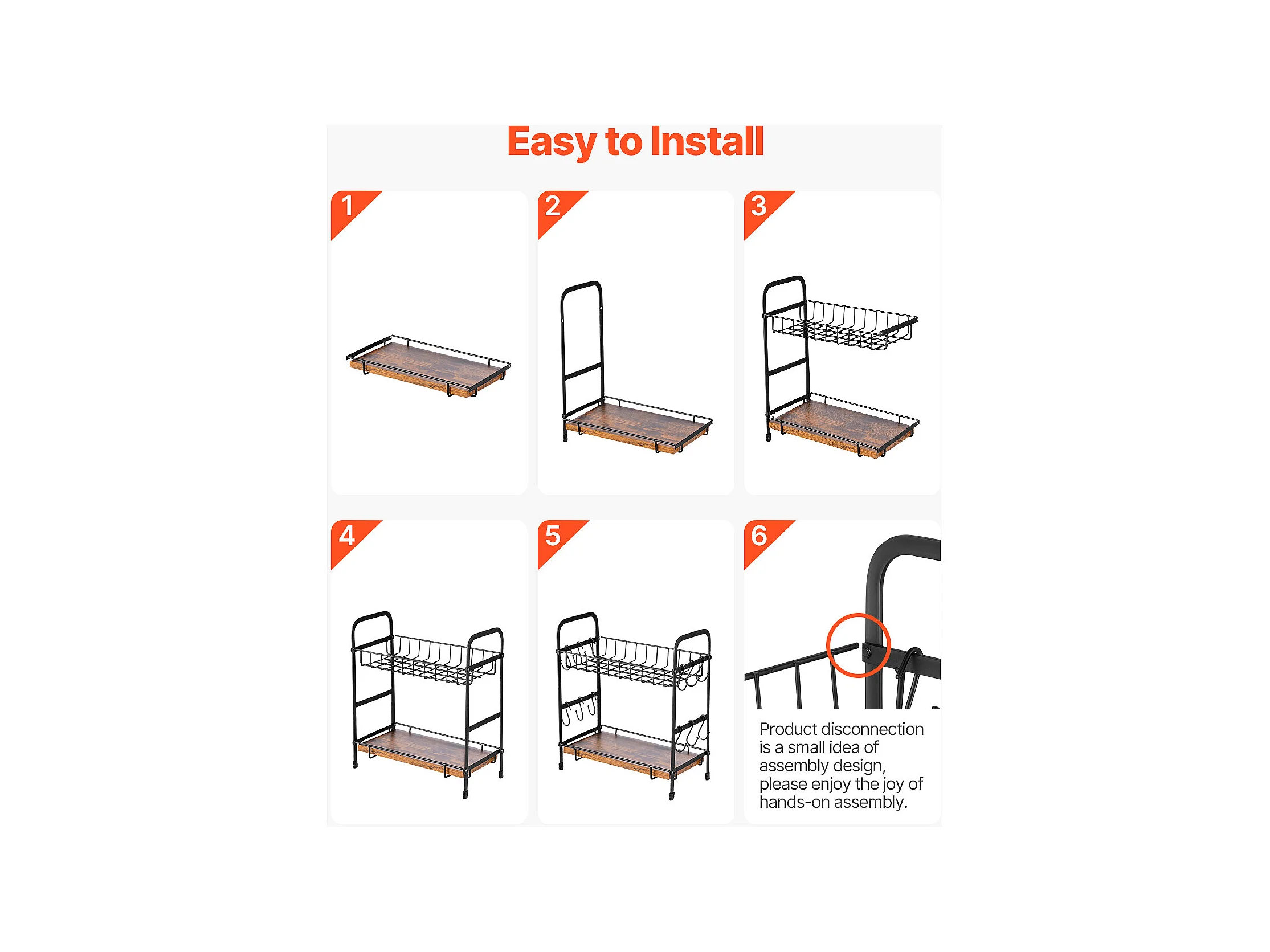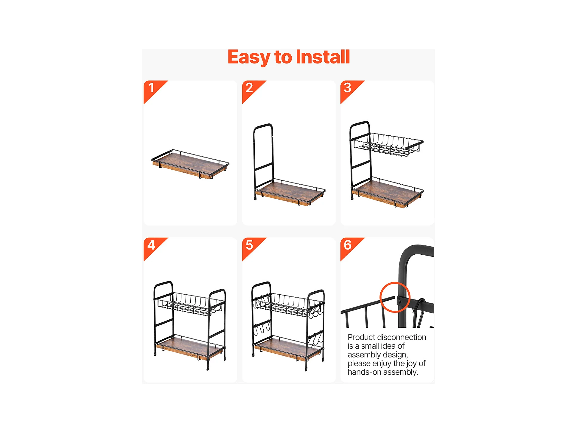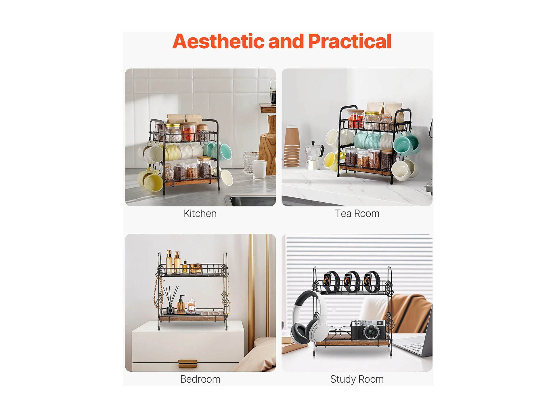 Porte-Tasses SucceBuy Organisateur de Bar à Café à 2 Niveaux pour Comptoir, 12 Crochets Mobiles