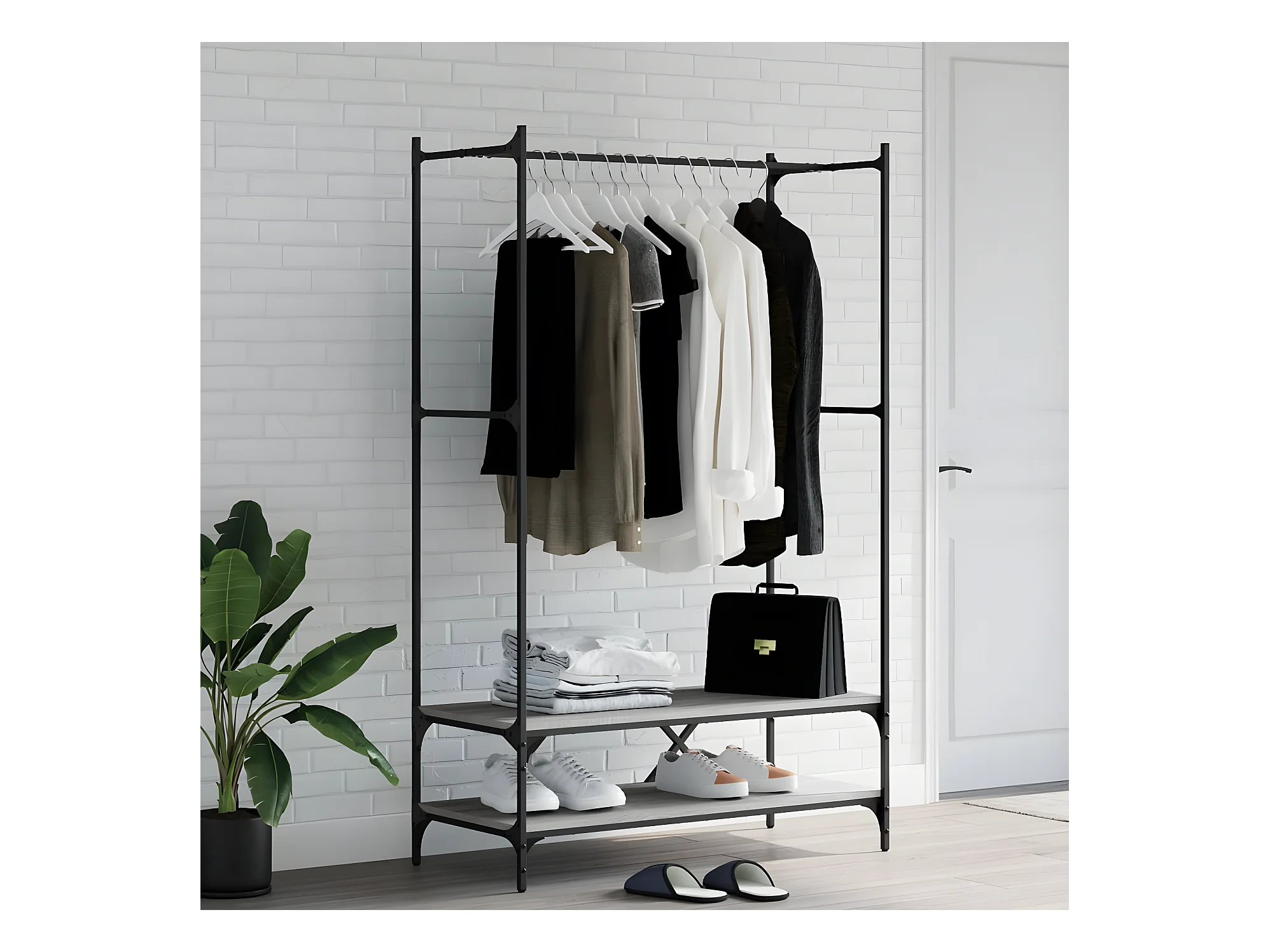 Porte-vêtements avec étagères sonoma gris bois d'ingénierie WVGQ6397
