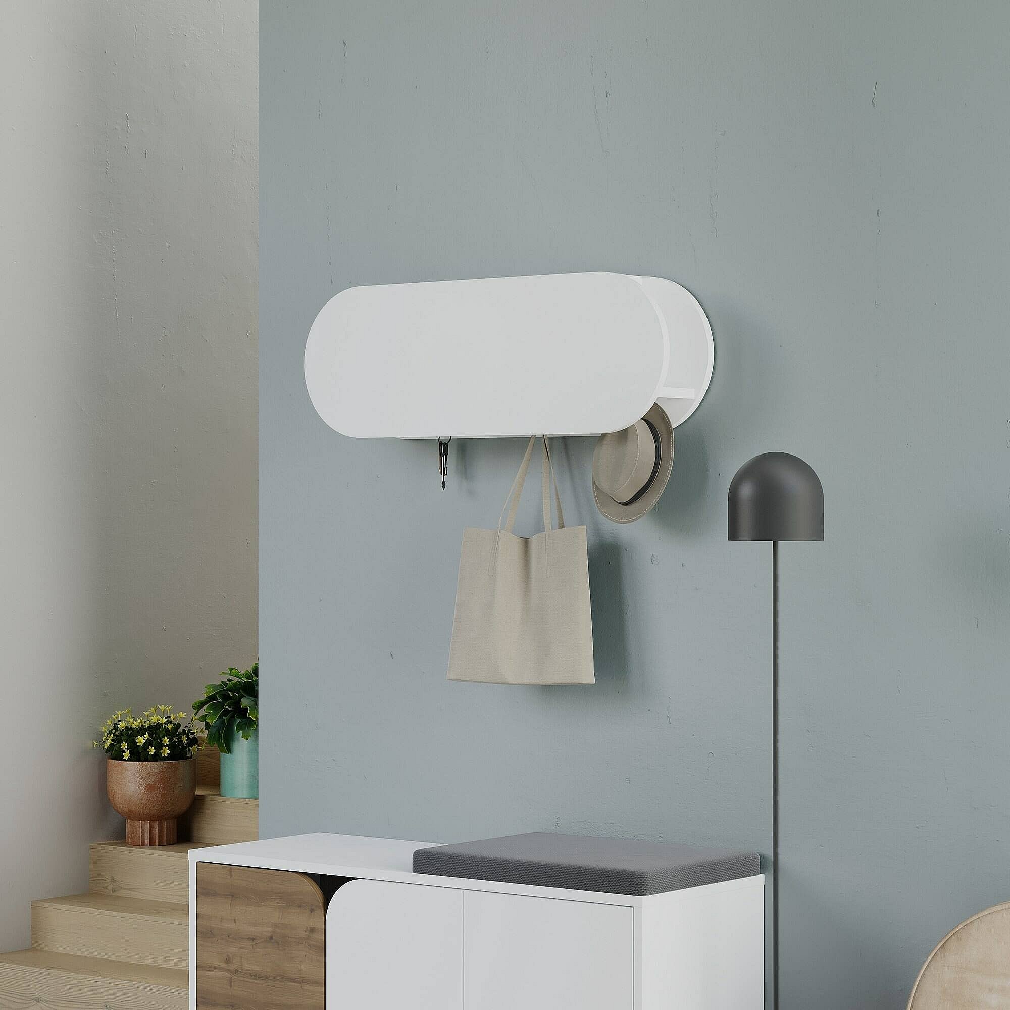 Meuble d'entrée Dmonteris, Crochet d'entrée, Composition pour l'atrium, Console de rangement multifonction, 65x4 h80 cm, Blanc