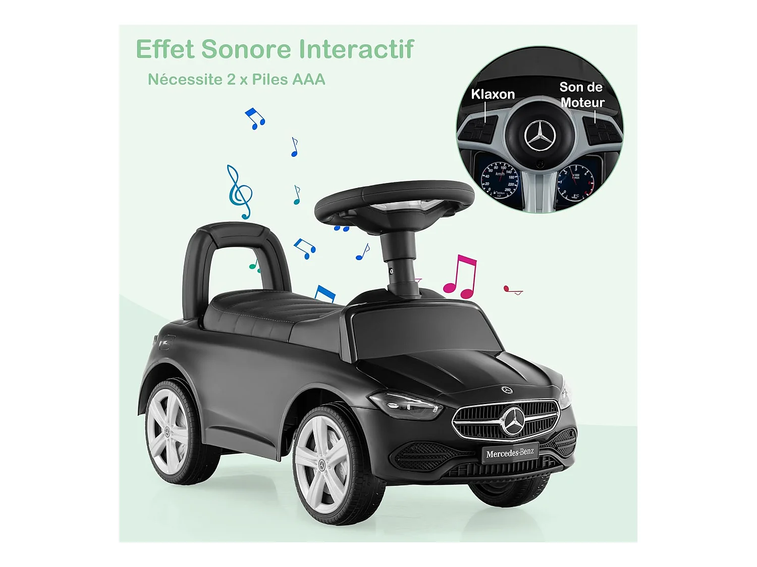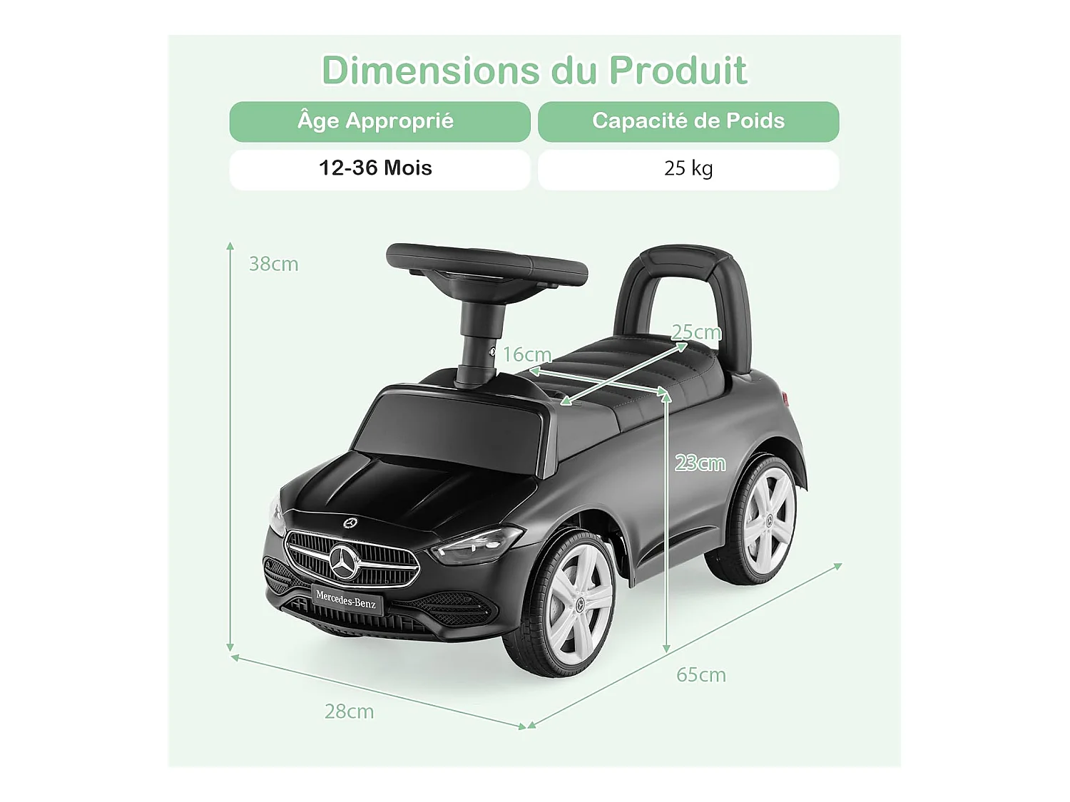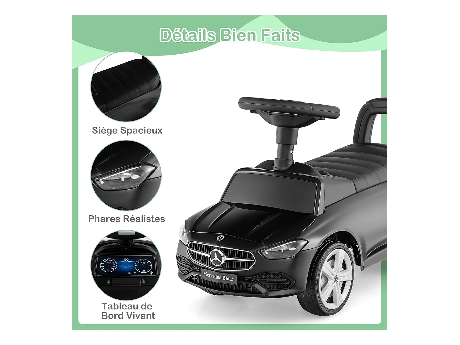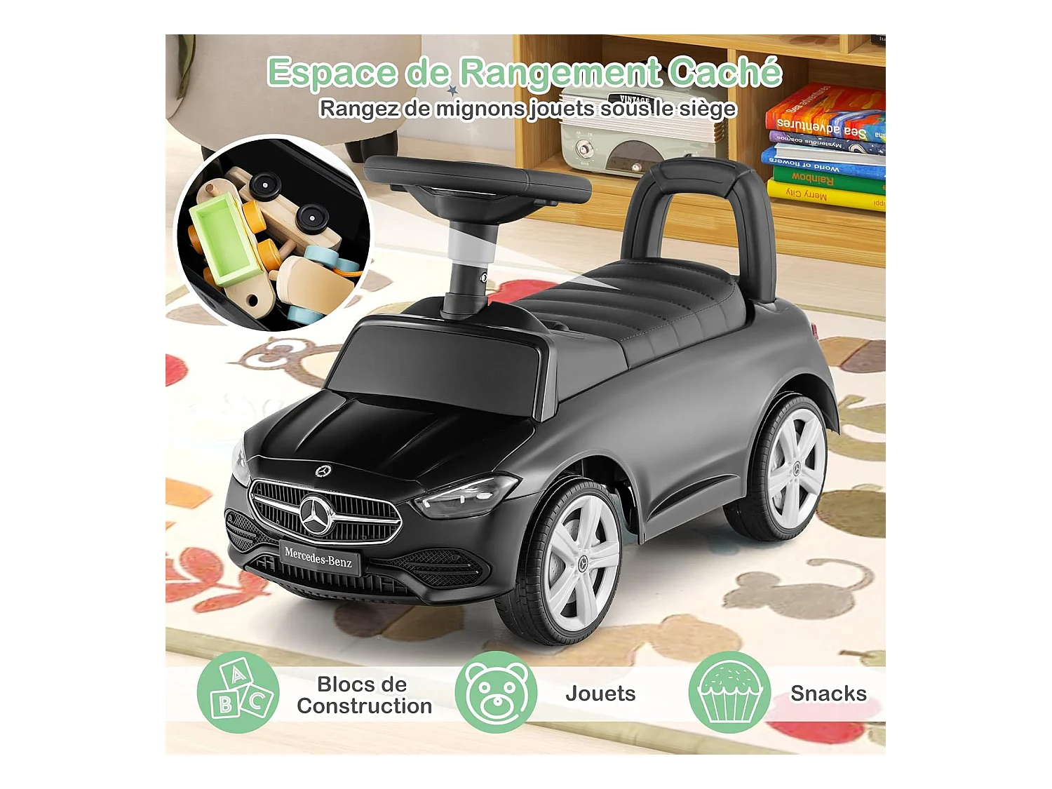 Porteur Enfant avec Volant & Klaxon & Son de Moteur, Voiture Mercedes-Benz Enfant avec Coffre à Jouets, Dispositif Anti-basculement, Charge 25kg pour 1-3 Ans (Noir)