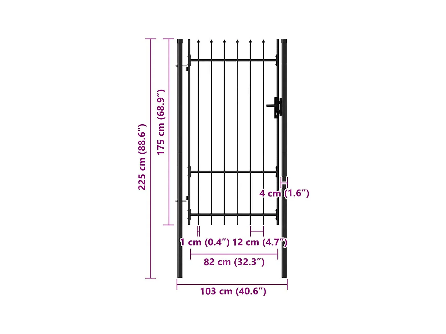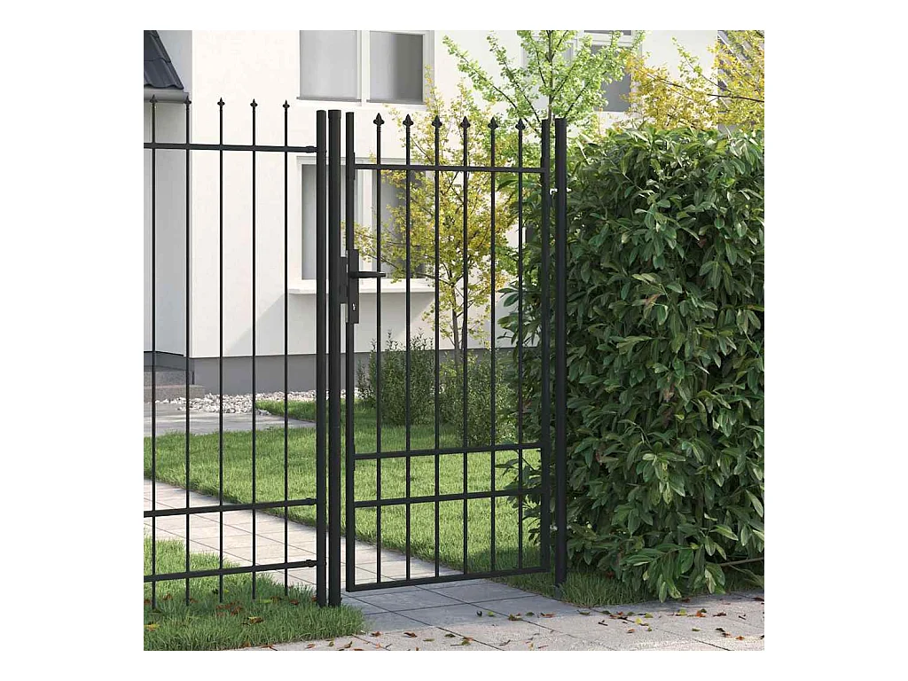 Portillon simple porte avec dessus à pointe Acier 1x1,75 m Noir