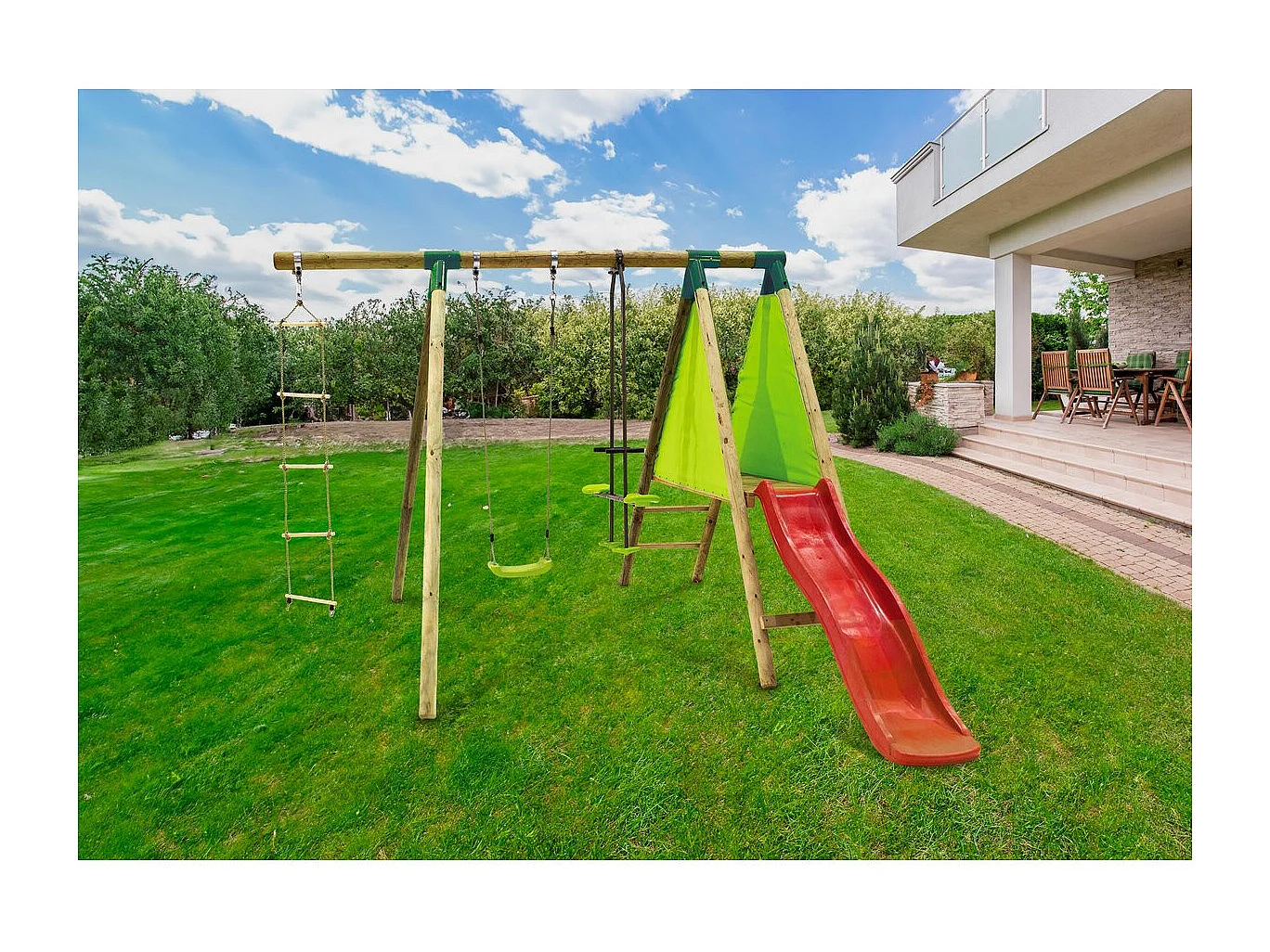Portique bois et métal - 2,30m - 2 balançoires et 1 toboggan 2,63m - ARROBA TRIGANO