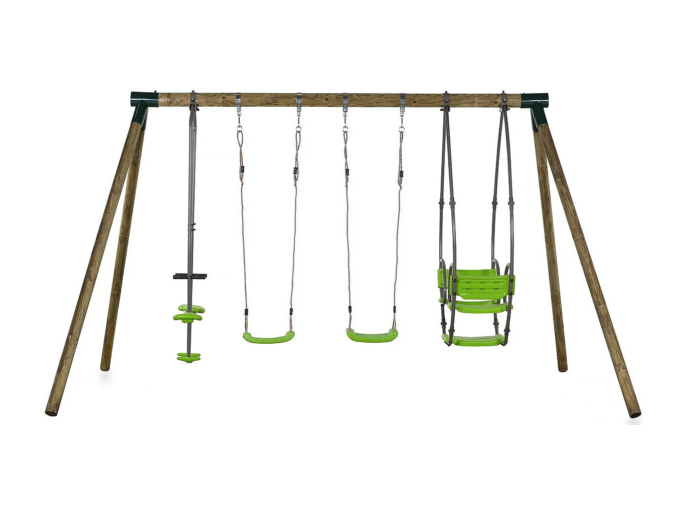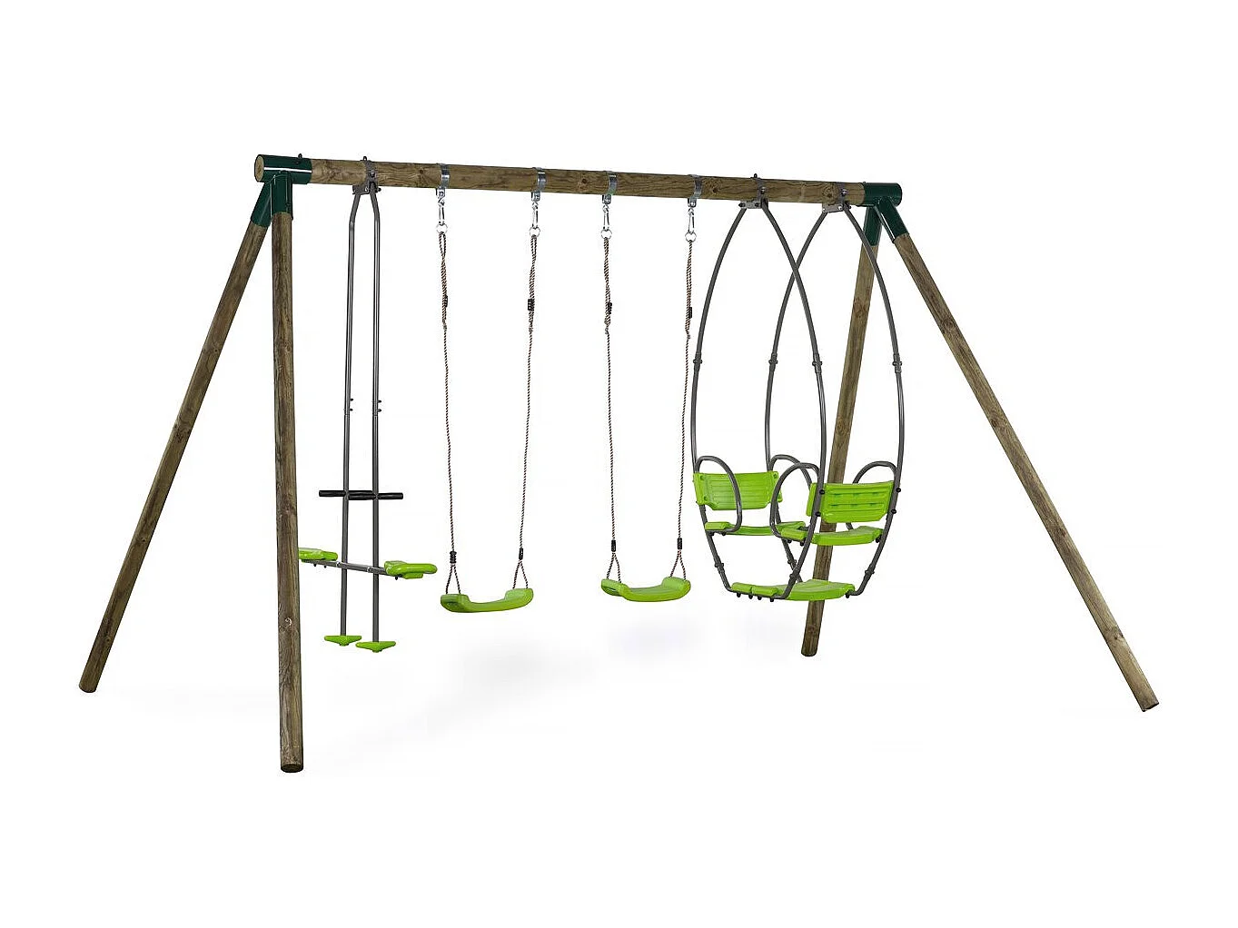 Portique bois "Nelio" - Avec 2 balançoires , 1 vis-à-vis et 1 nacelle.