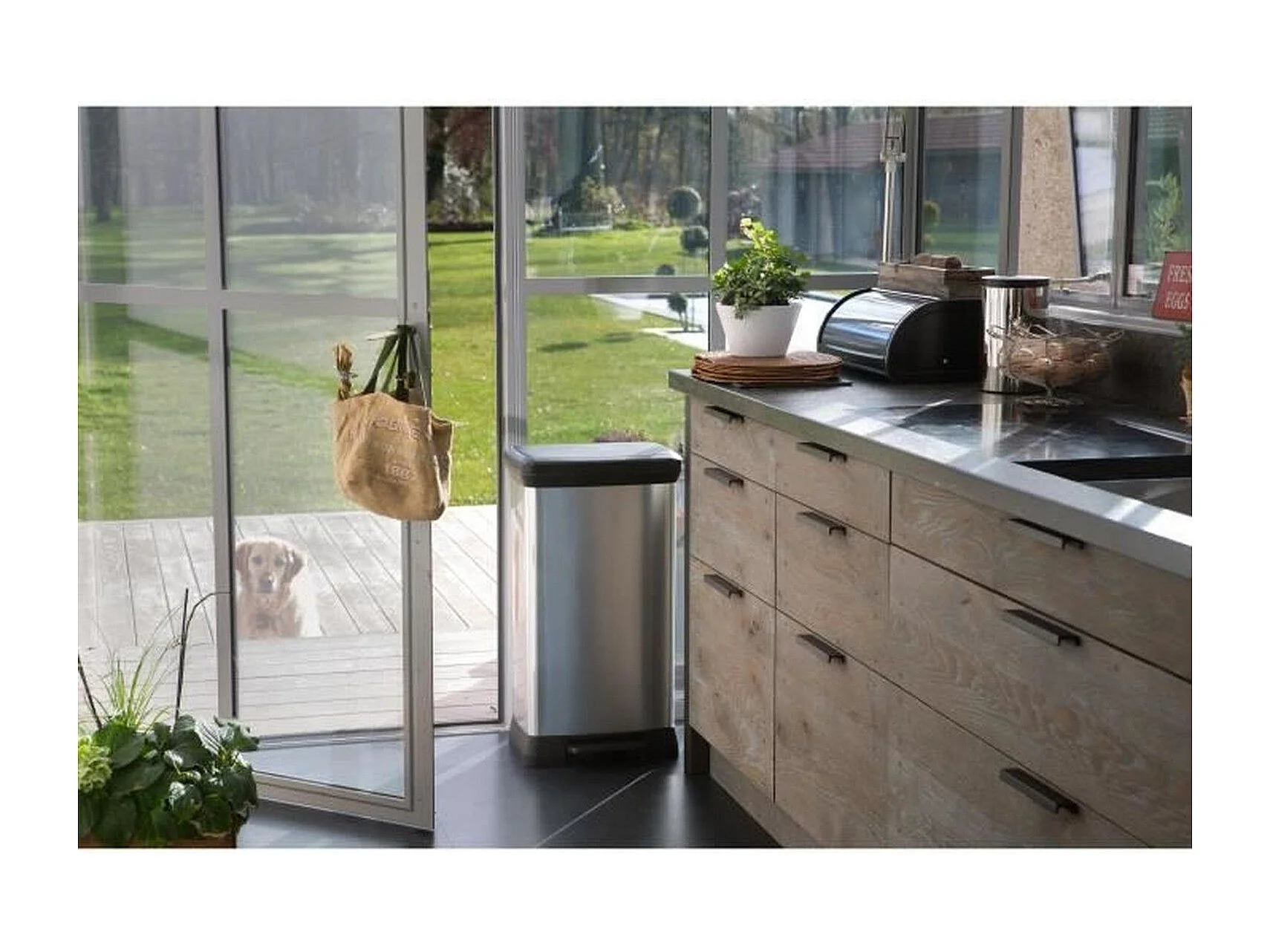 Poubelle à pédale 50 litres - Aspect métal - Plastique recyclé