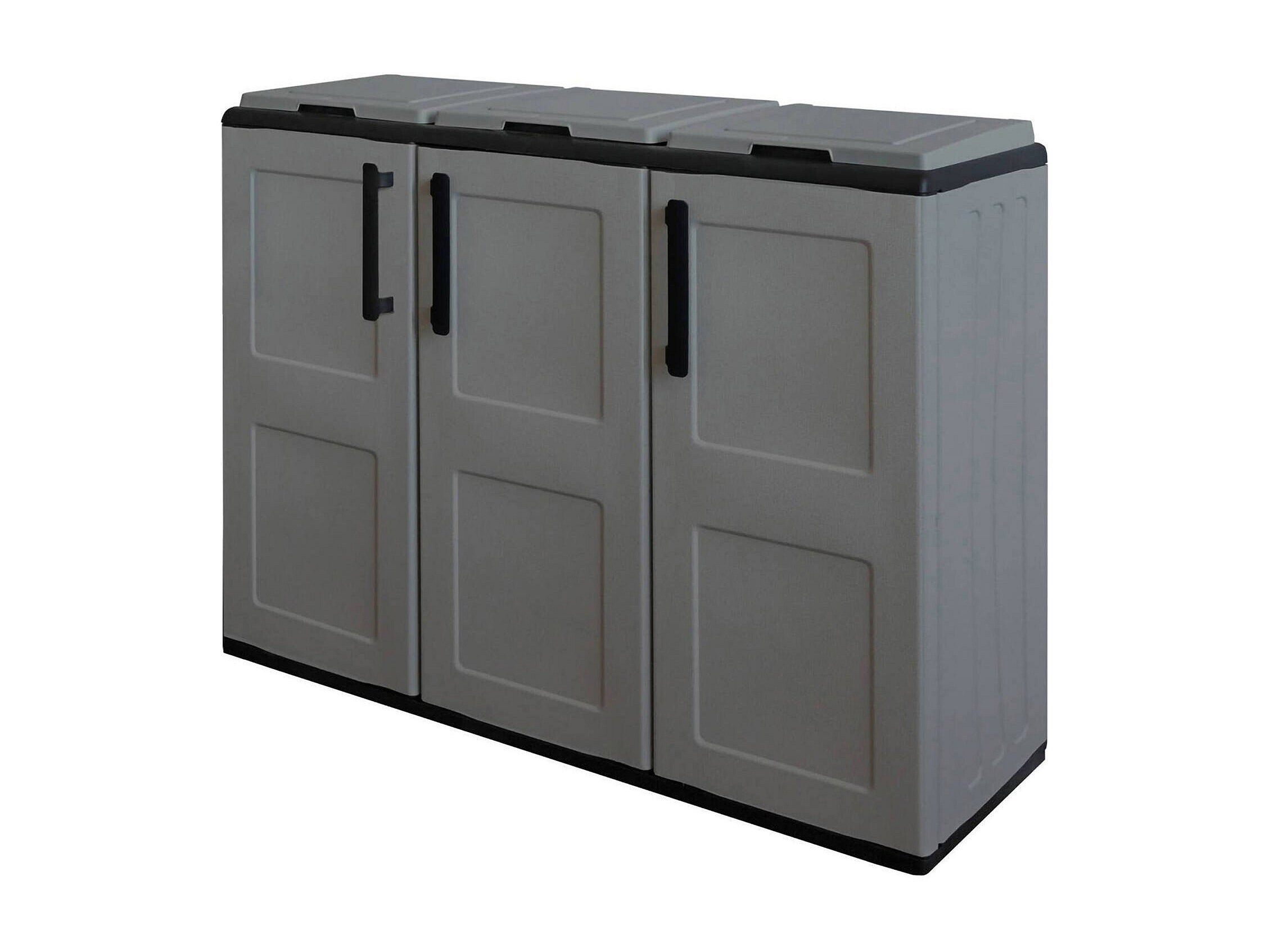 Cache poubelle, Abri de Rangement pour Poubelles SucceBuy, 3 x 240 L, avec Couvercle à Chaîne