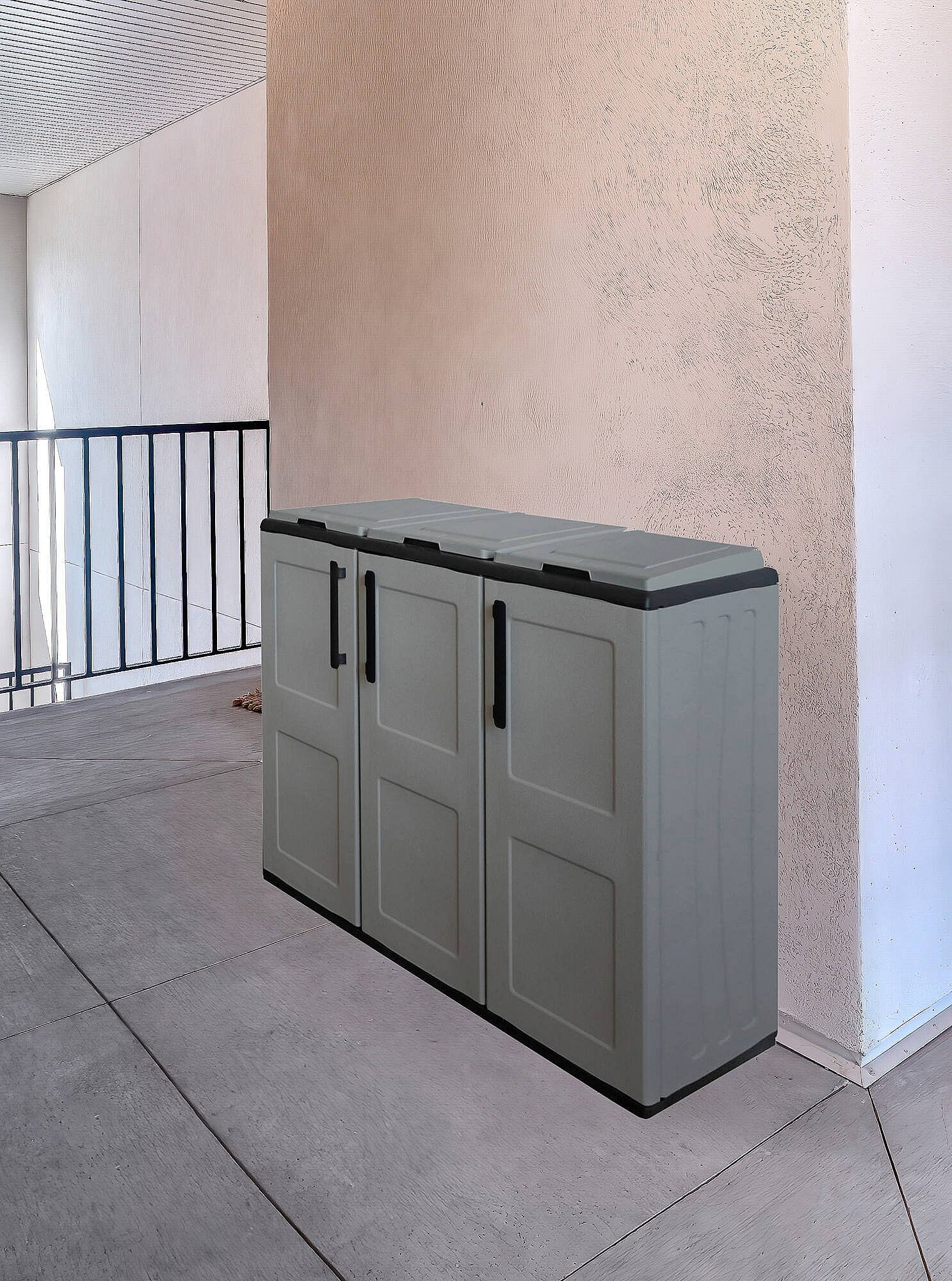 Armoire extérieure ou interne, porte mobile 3 sacs à 3 portes pour collection séparée, 100% Made in Italy, 102x37h84 cm, couleur grise