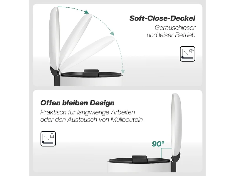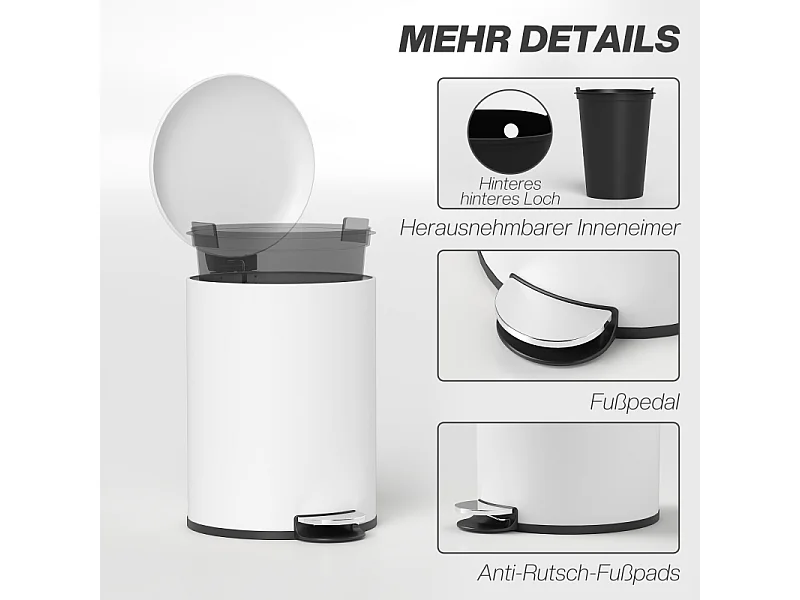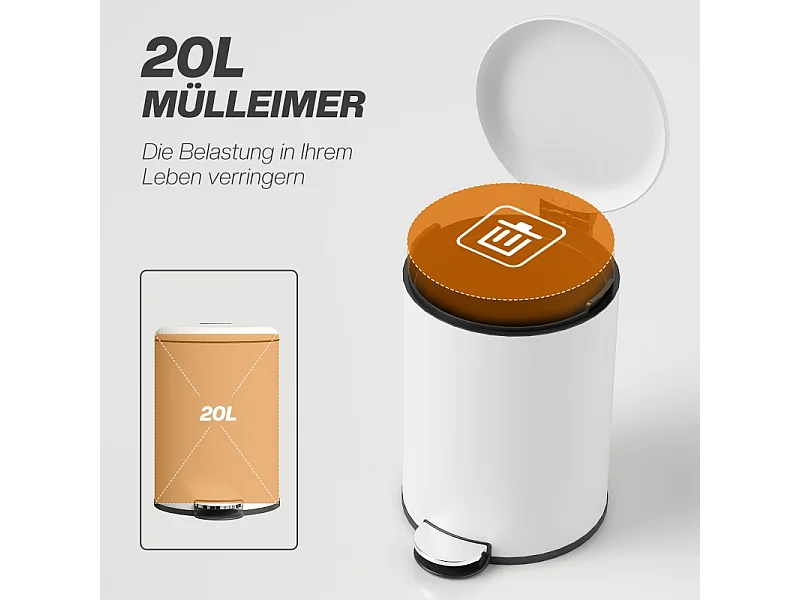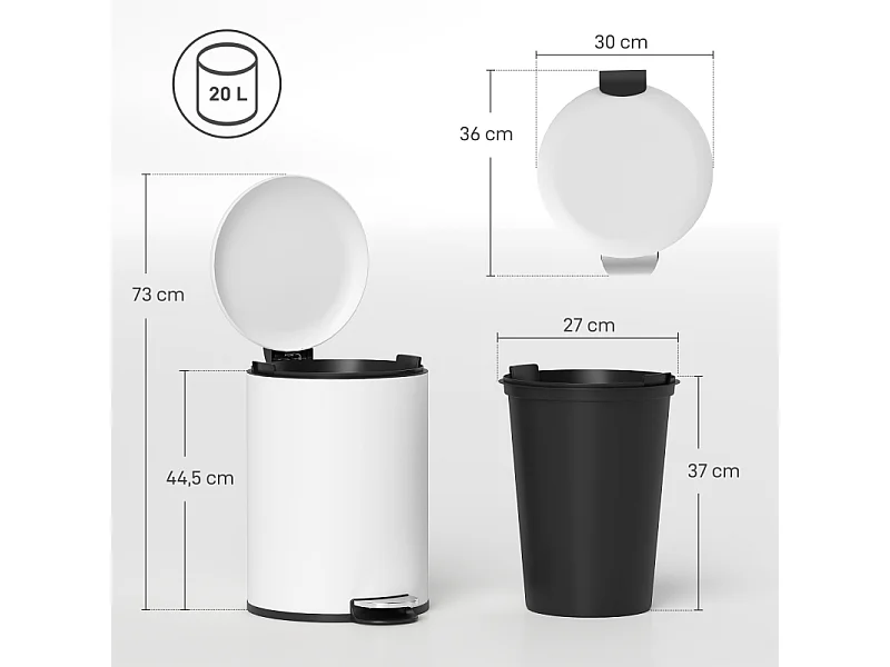 Poubelle avec pédale et couvercle, 20L, avec seau intérieur, métal, blanc (36x30x44.5 cm)
