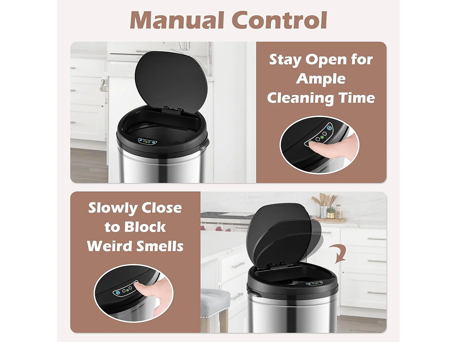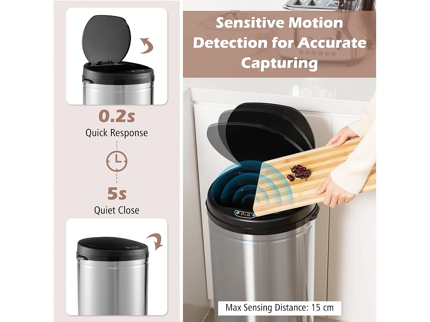 Poubelle Cuisine Automatique 30 Litres en Acier Métal avec Cerclage, Poubelle à Capteur Automatique Fermeture Douce, Anti-Empreintes