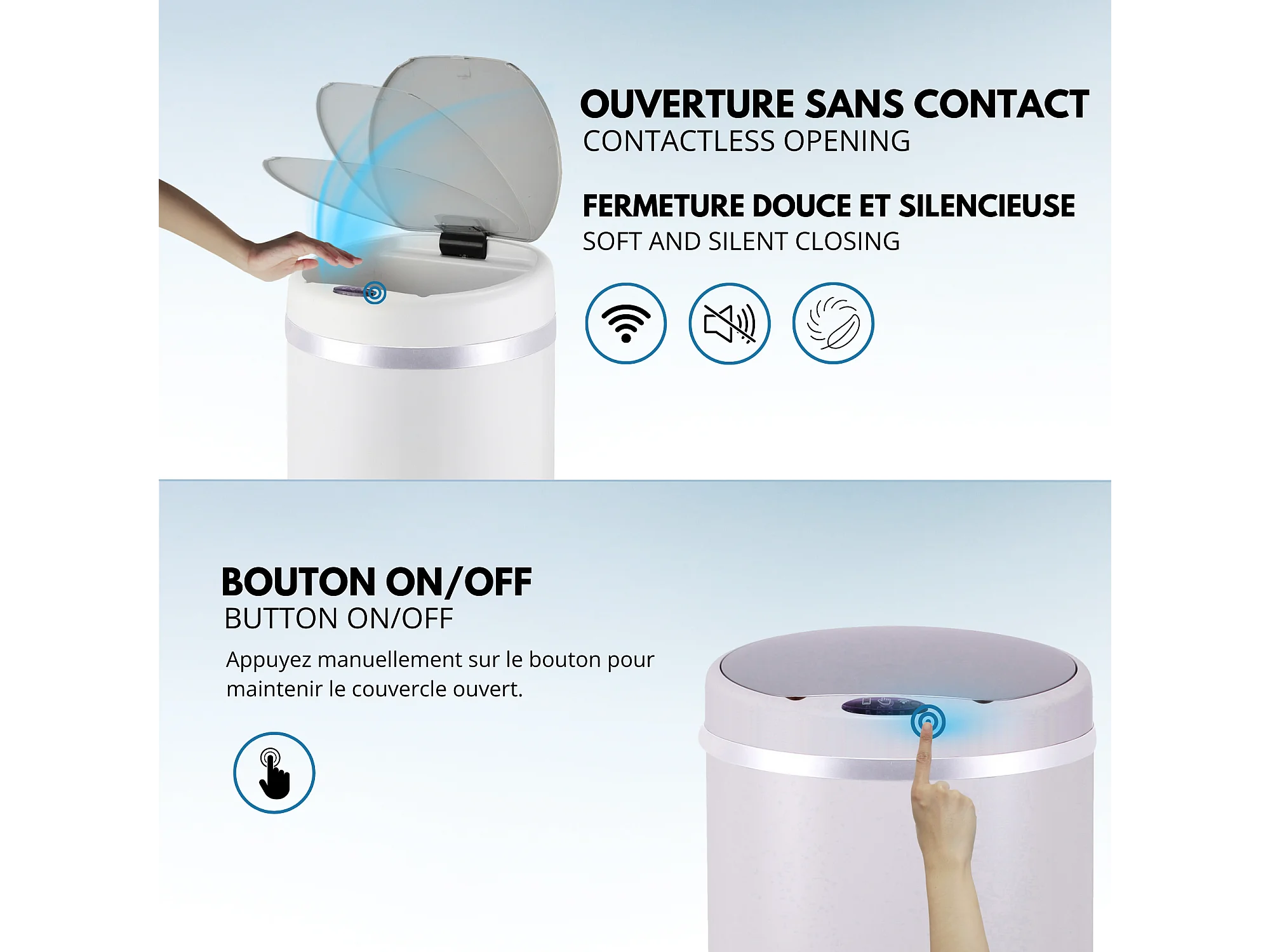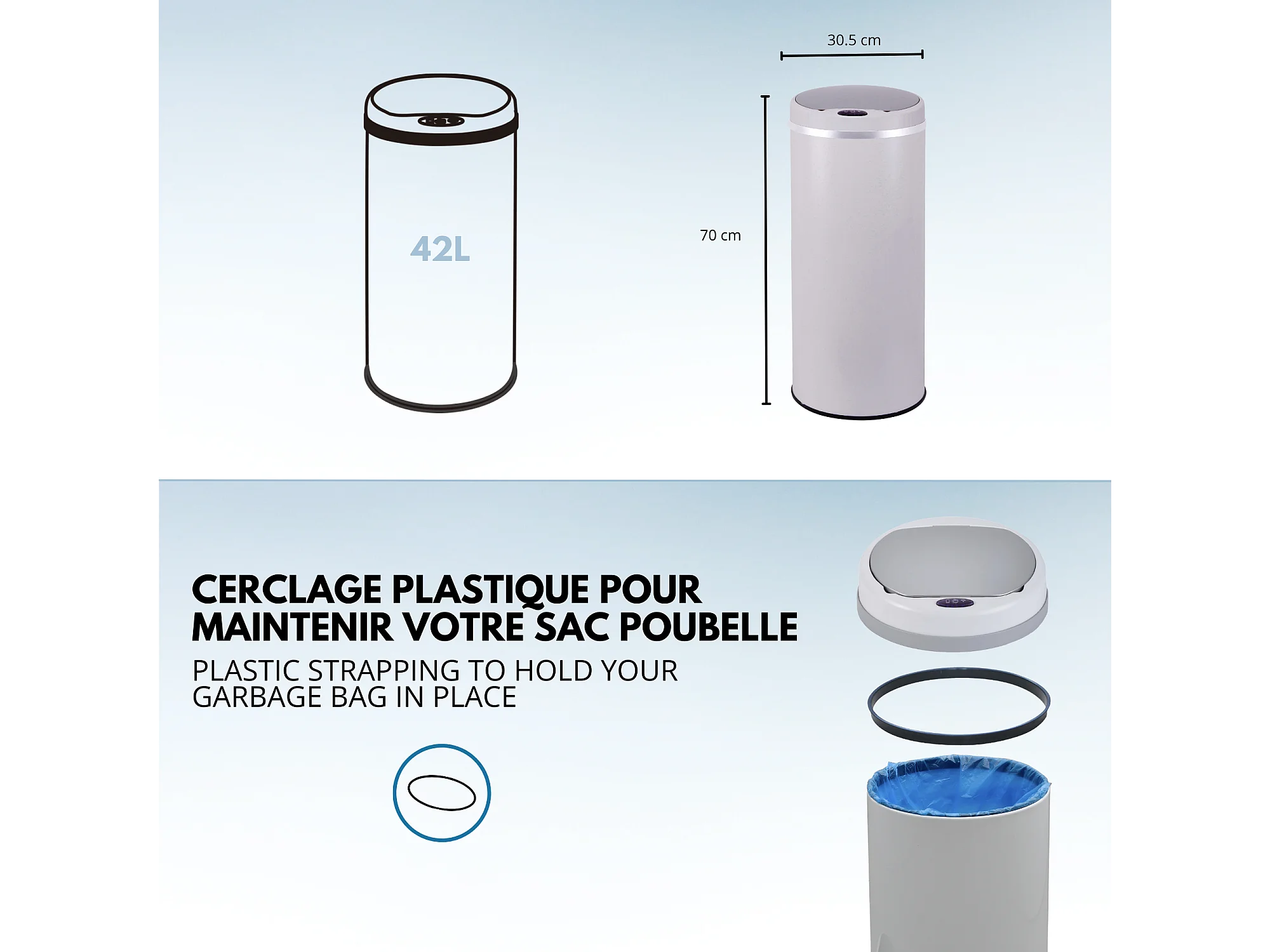Poubelle automatique inox SOHO blanc 42L