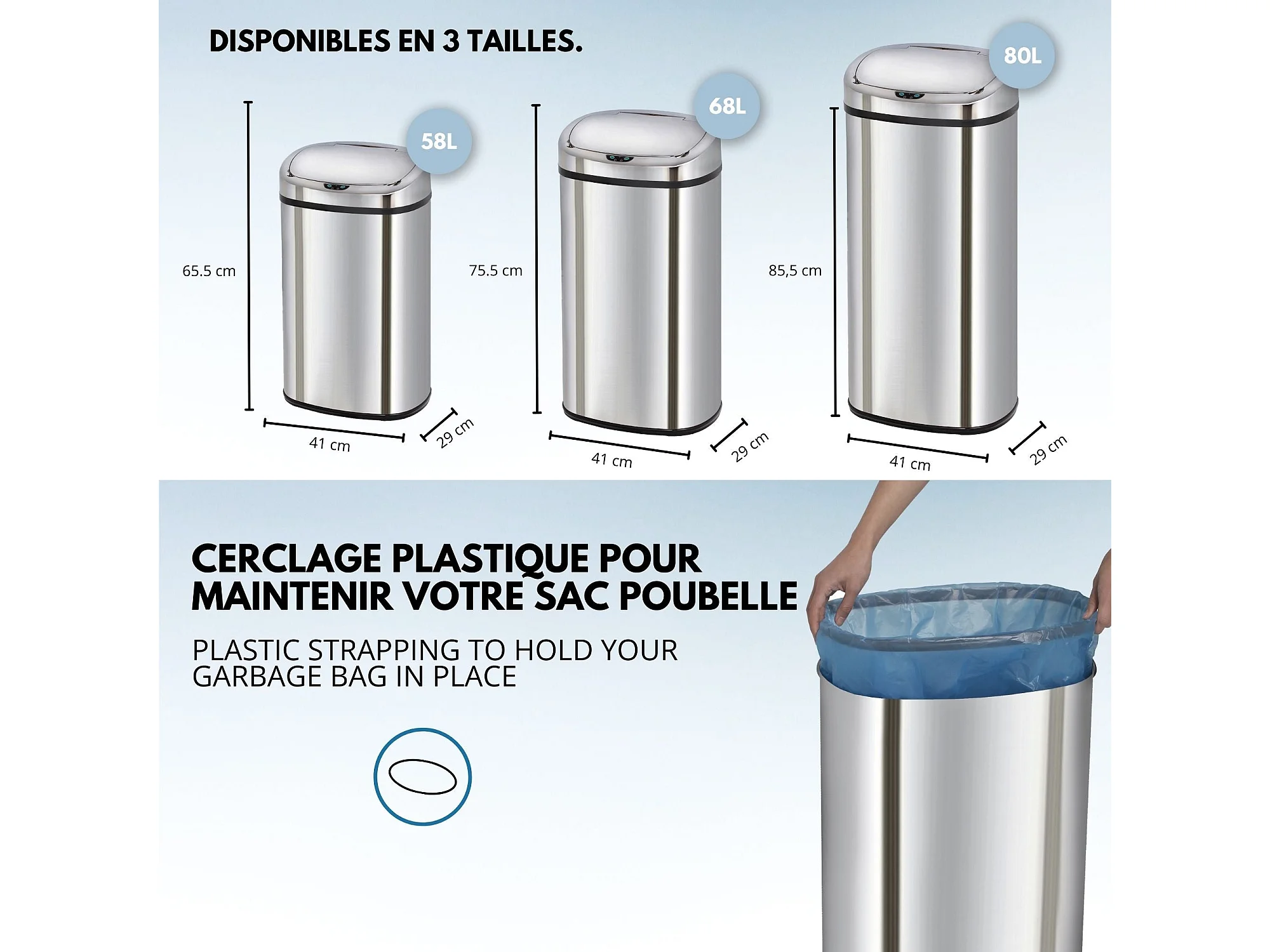 Poubelle de cuisine automatique SILVERLAKE Argent Acier inoxydable 60L