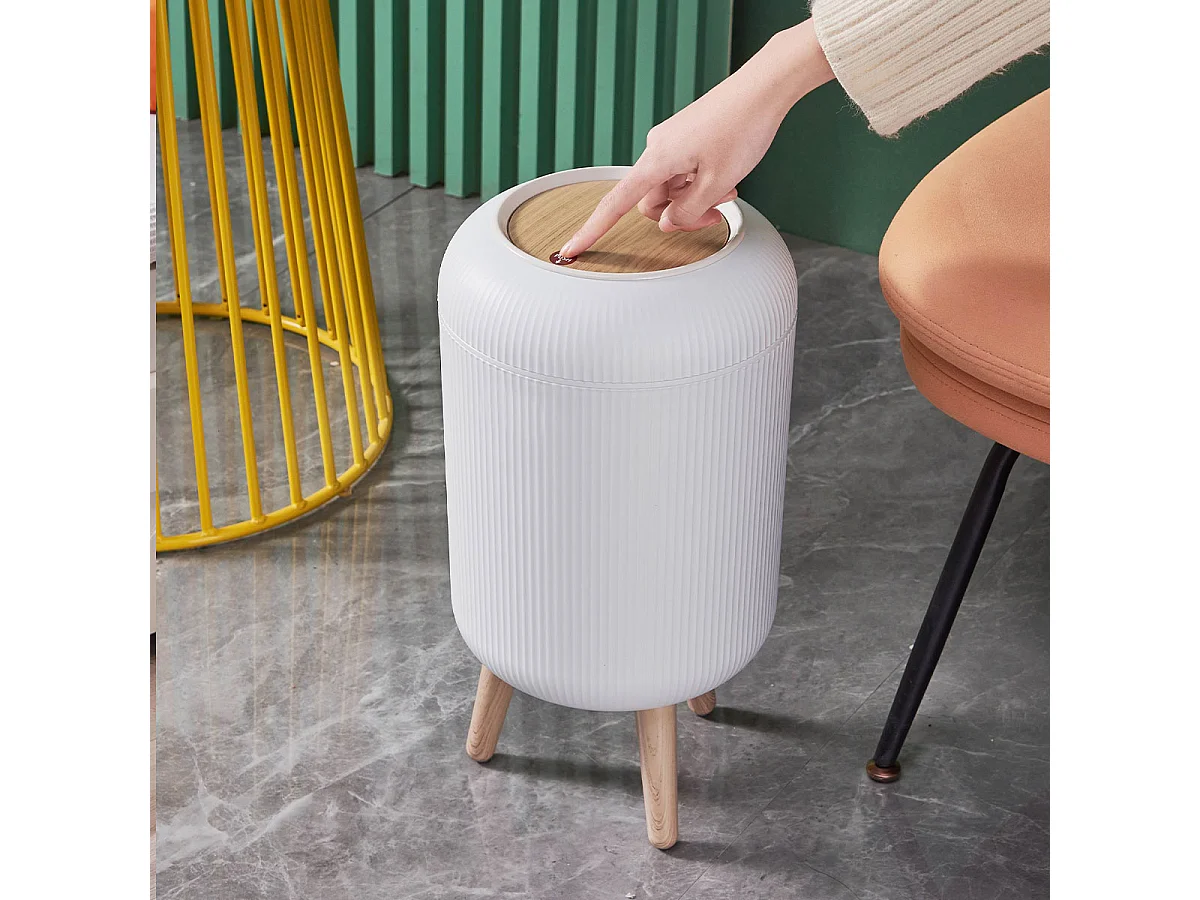 Poubelle de salle de bain en métal Blanc et couvercle en Bambou 3 L