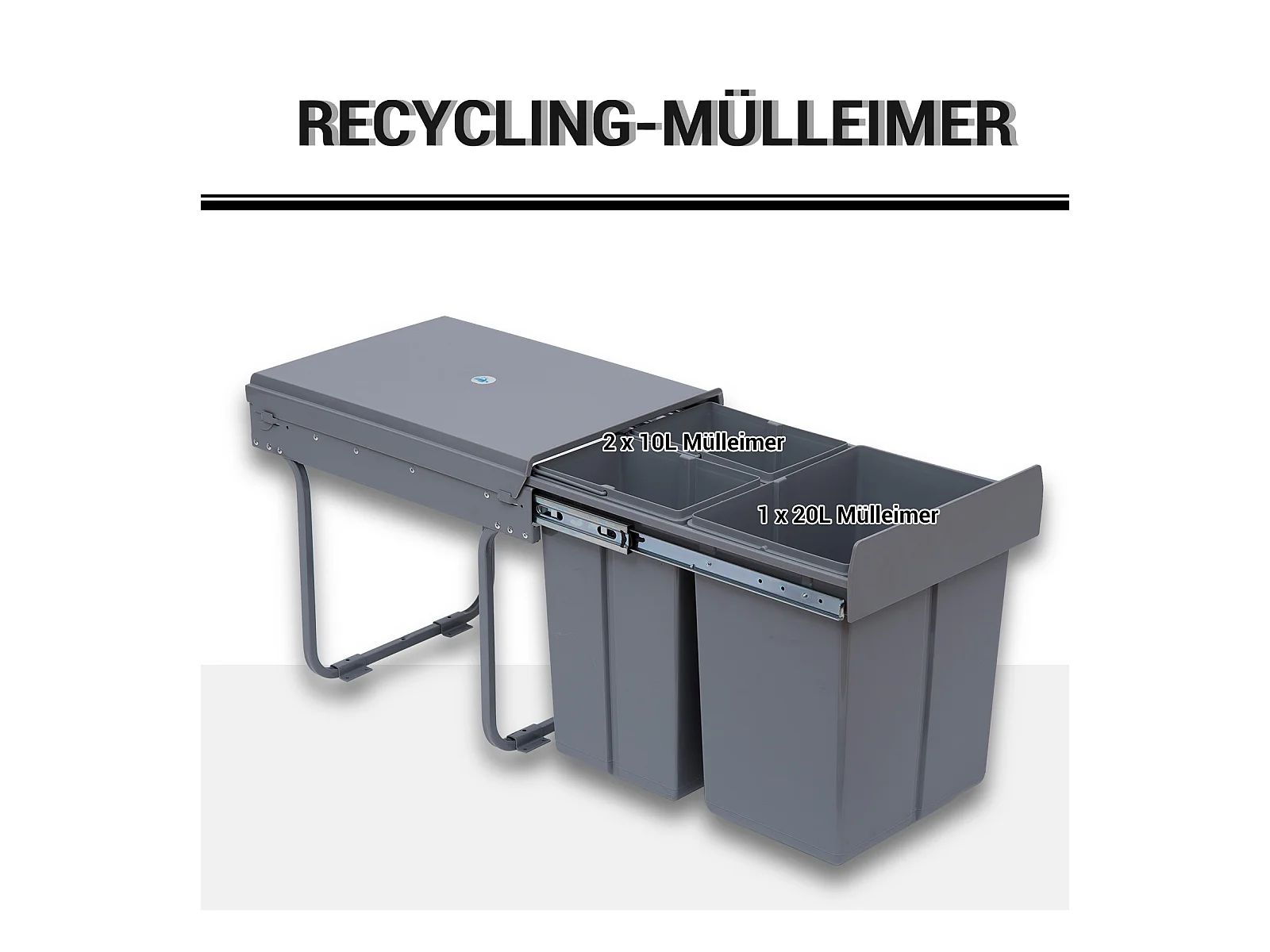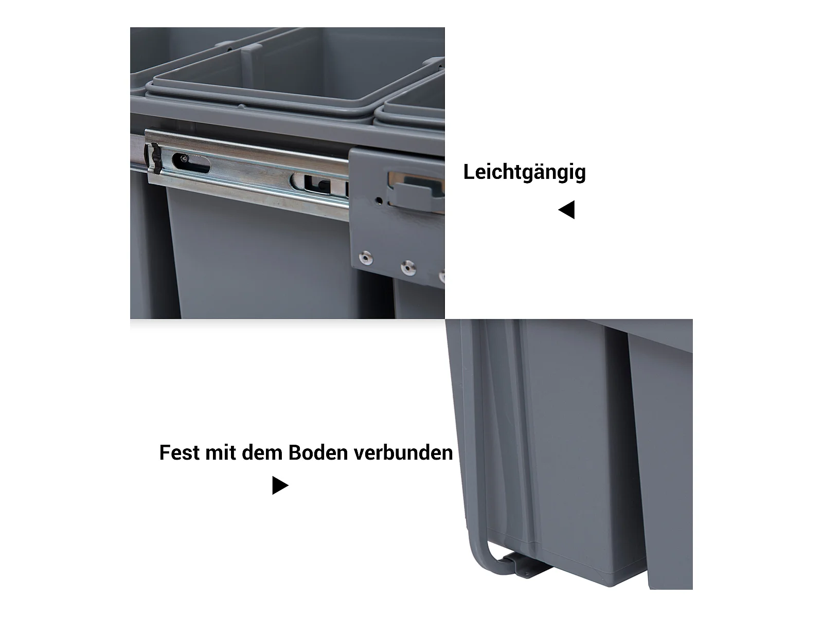Poubelle encastrable 40L, système de tri avec 3 bacs amovibles, plastique, gris (48x34.2x41.8 cm)