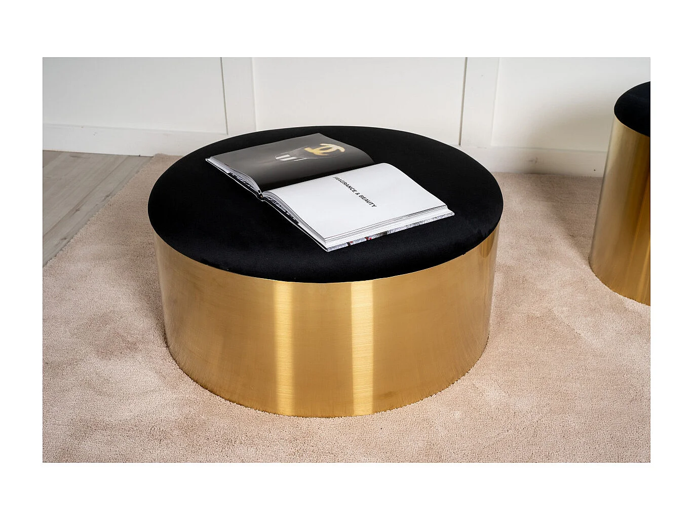 Pouf Rond Design "Puff" 75cm Noir & Or