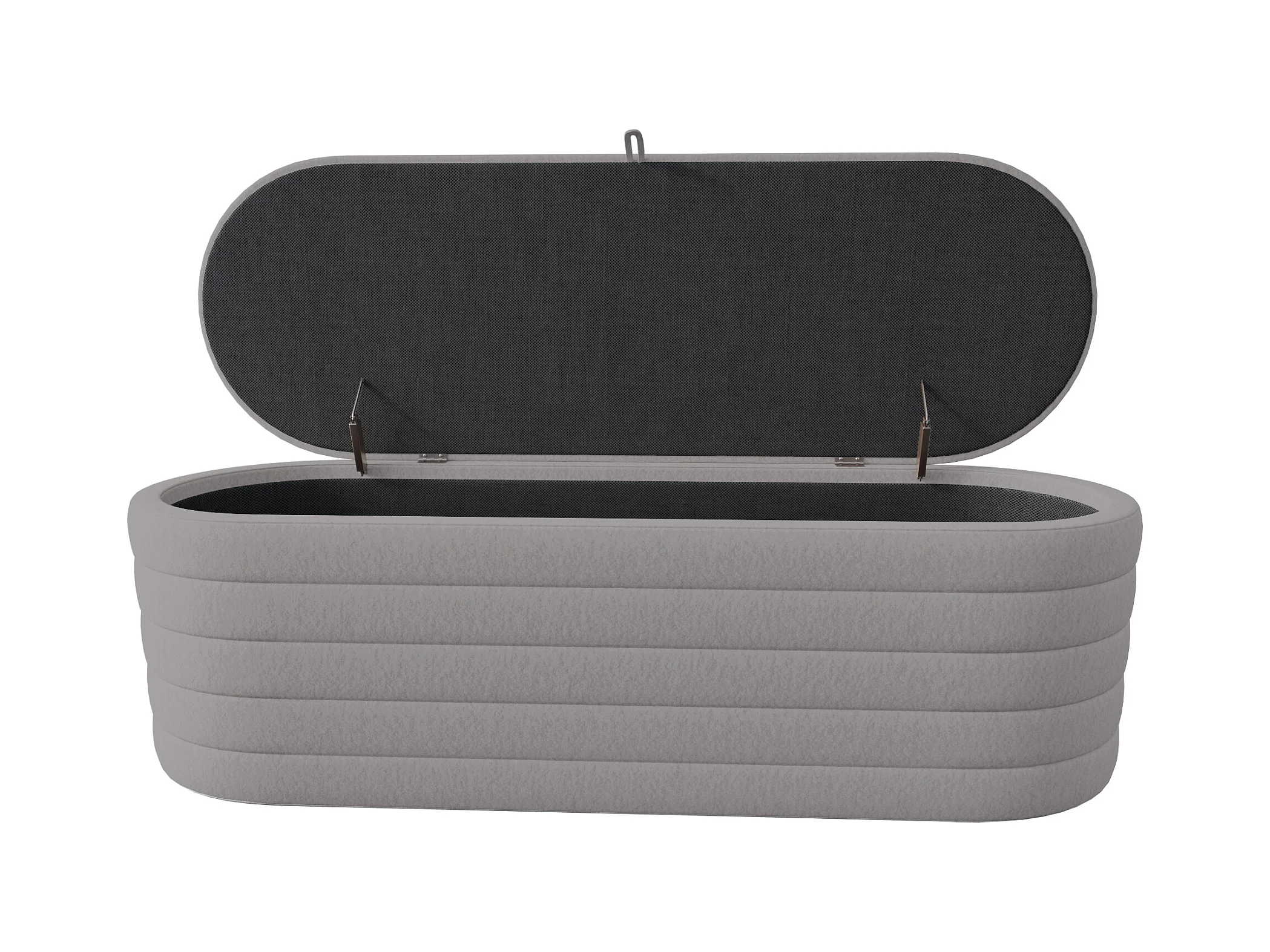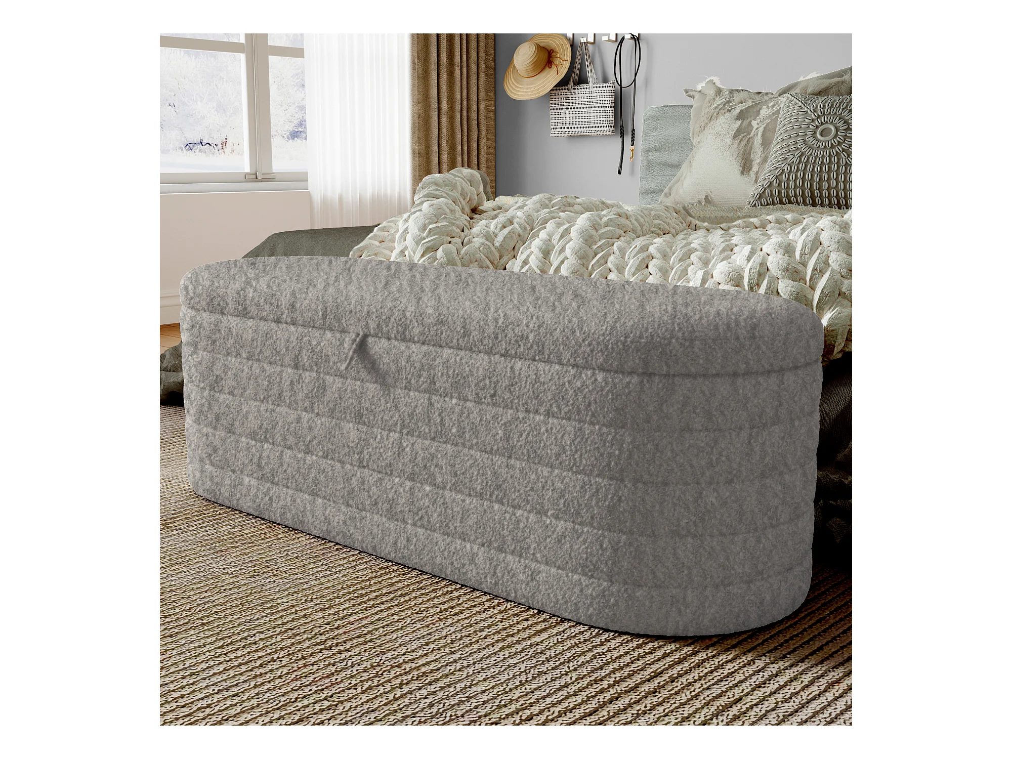 Banquette de rangement moderne, tissu Chenille et bois massif, antidérapante, grise (112x43x43 cm)