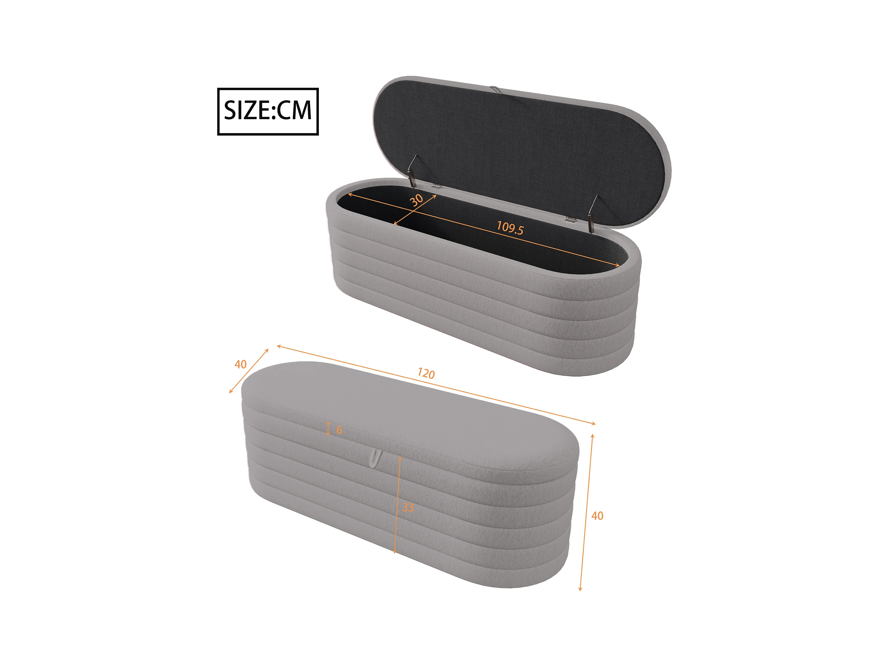 Pouf avec rangement, coussin confortable en Tissu peluche, couleur grise, 120x40x40 cm