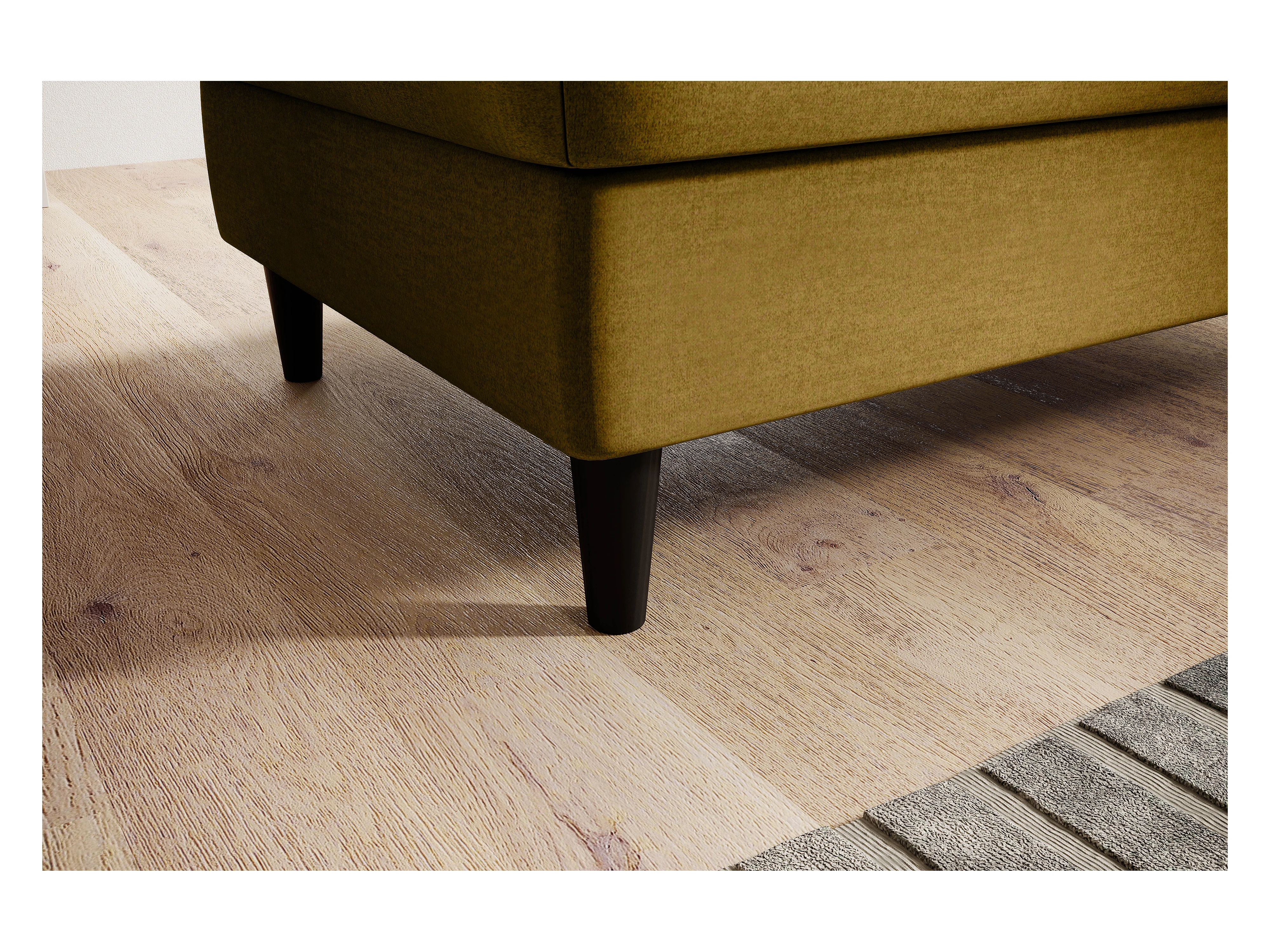 Pouf velours moutarde et pieds en bois de hêtre Saline 100cm