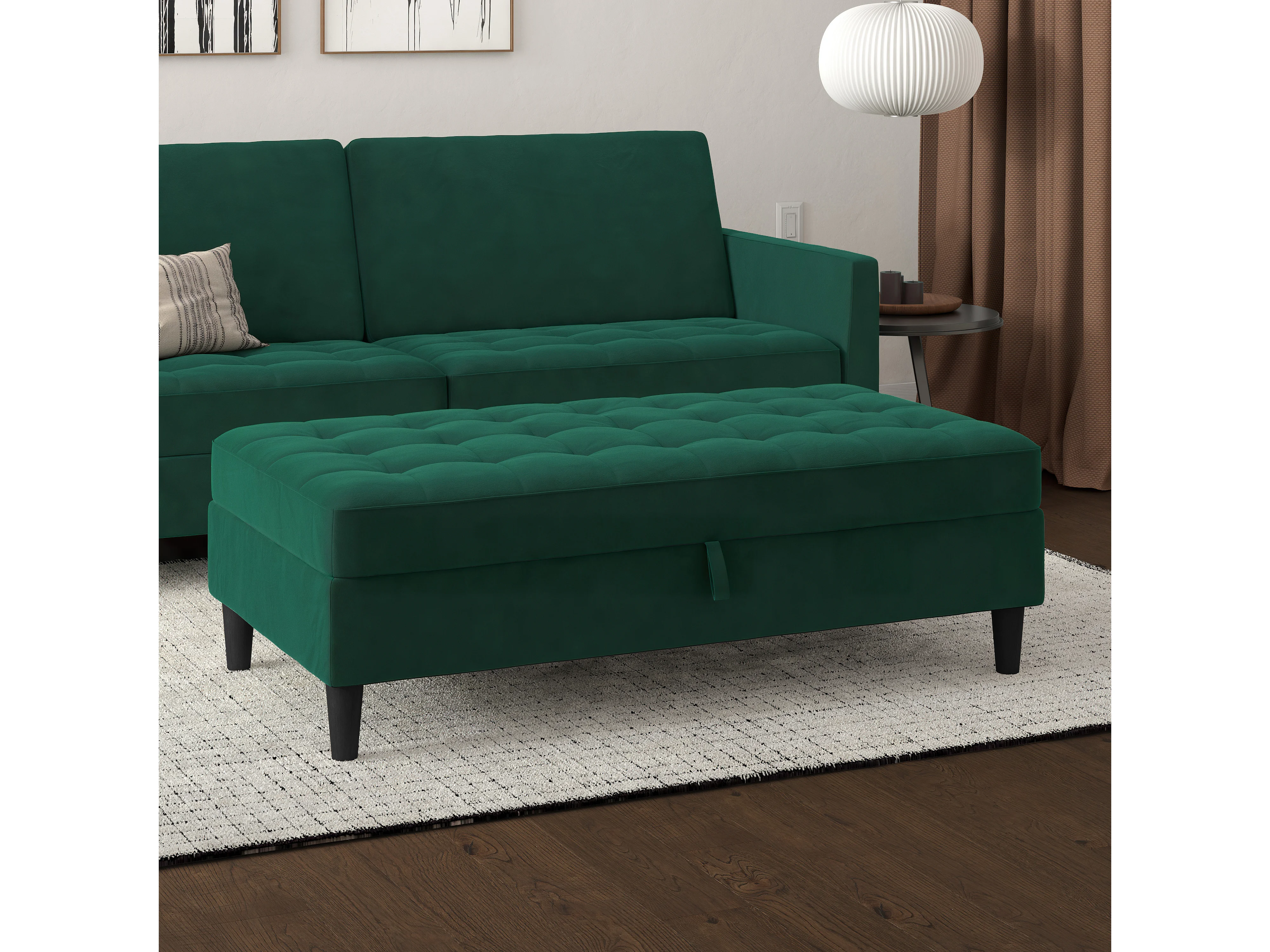 Presley | Pouf avec rangement en velours vert foncé