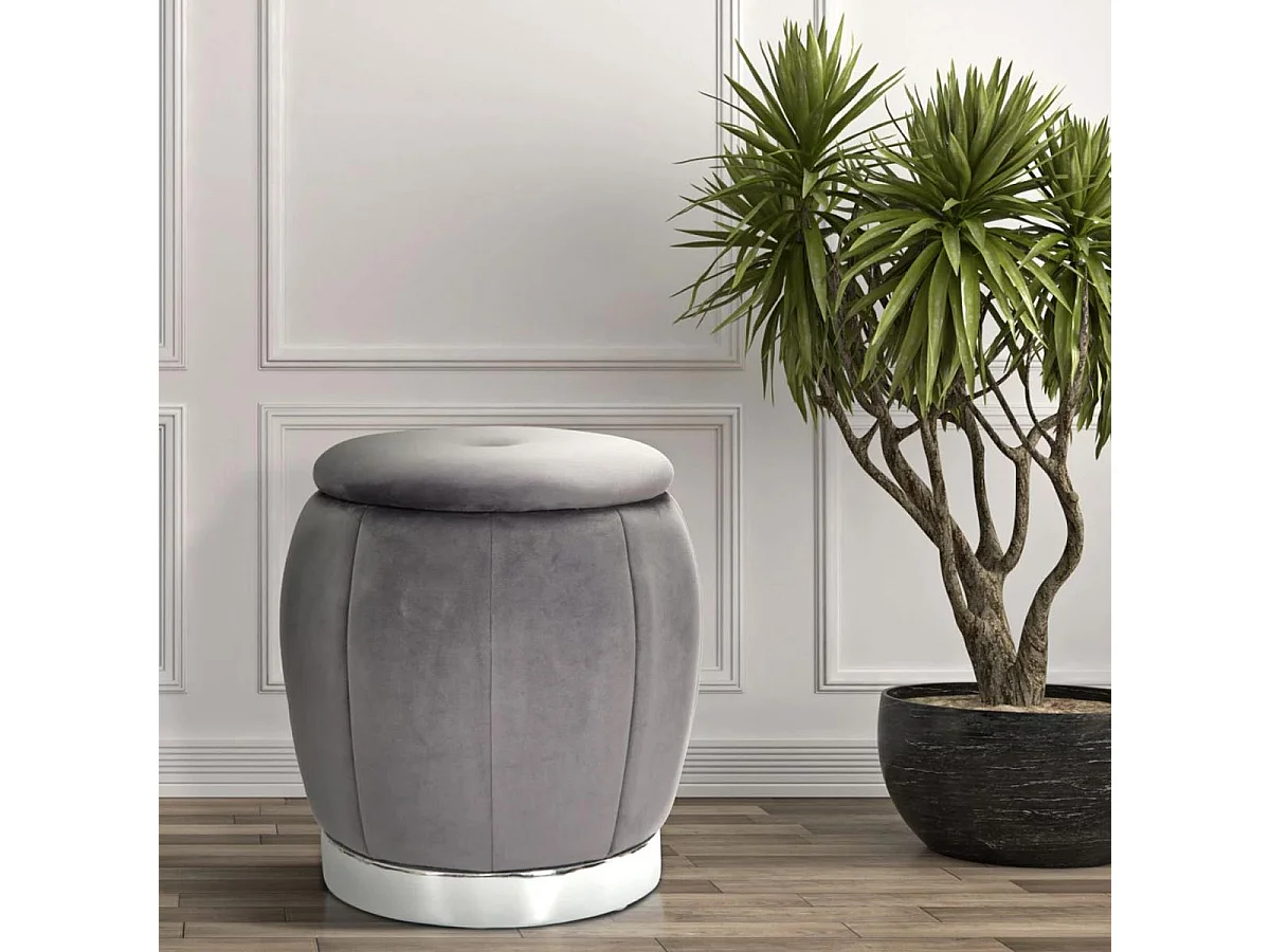Pouf Coffre Rangement "Paris" Gris Foncé & Argent