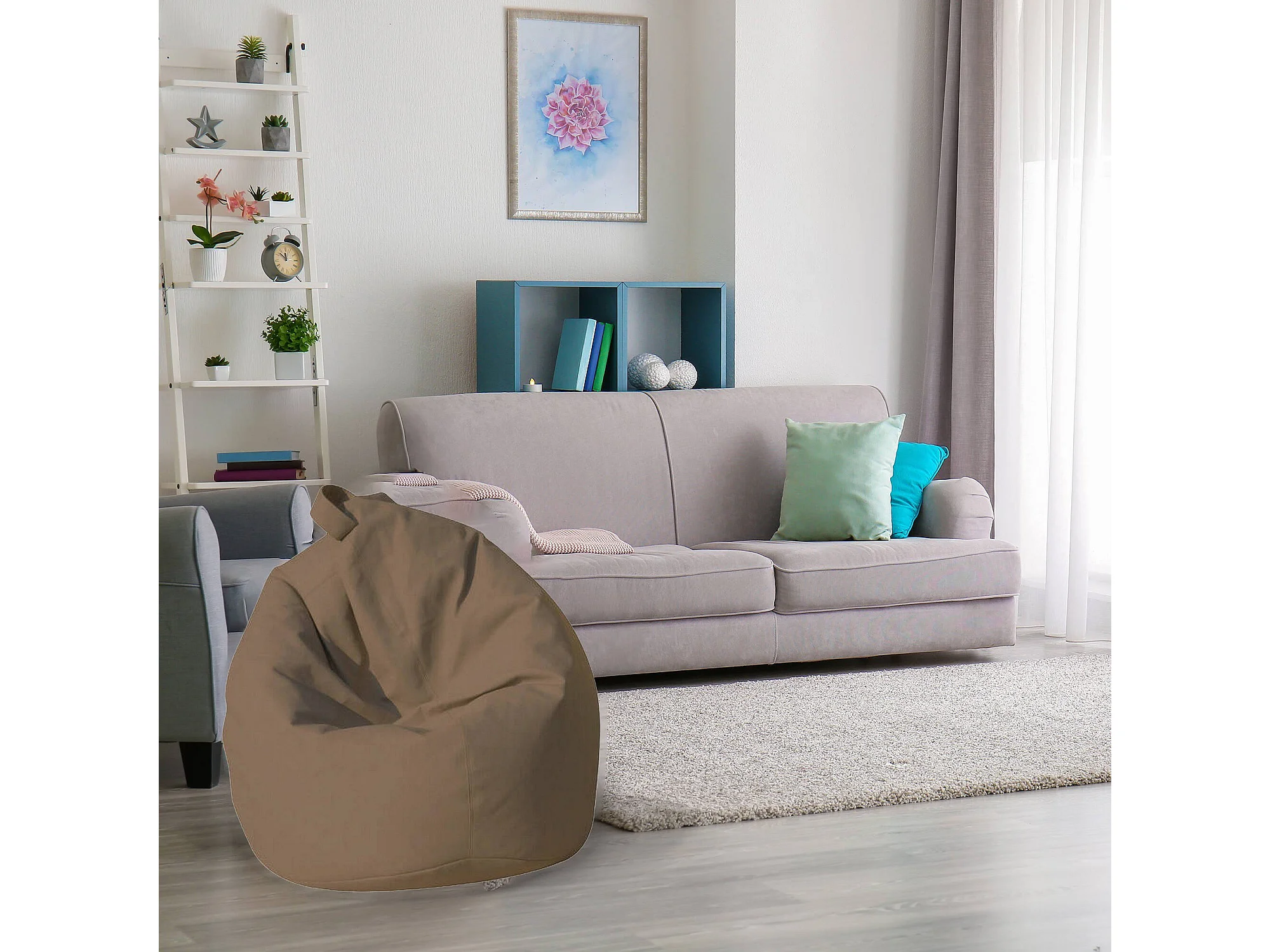 Pouf Azelia, Fauteuil polyvalent, Chaise sac, Pouf repose-pieds, Made in Italy, 70x70 h110 cm, Beige
