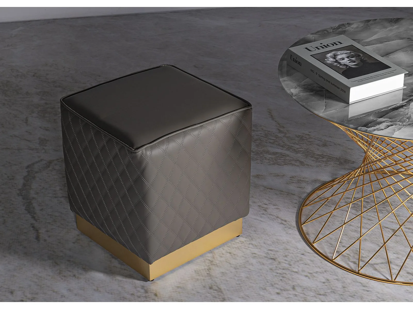 Pouf Matelassé "Sharon" 38cm Gris & Or