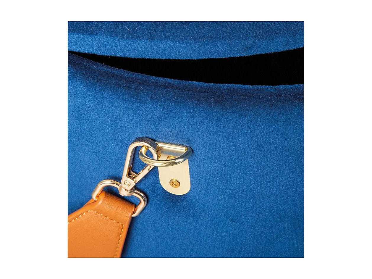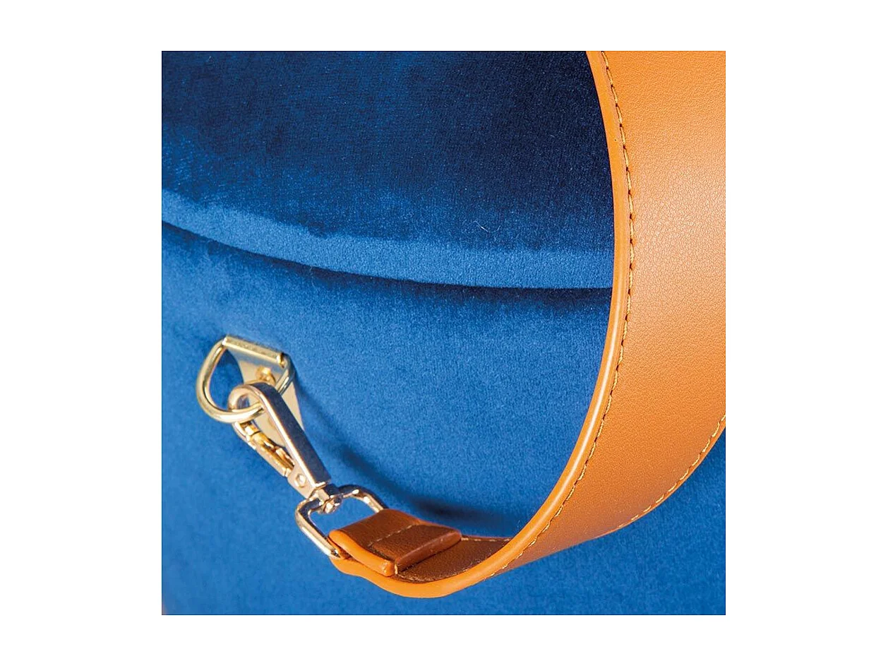 Pouf Coffre en Velours à Sangle "Yola" 45cm Bleu
