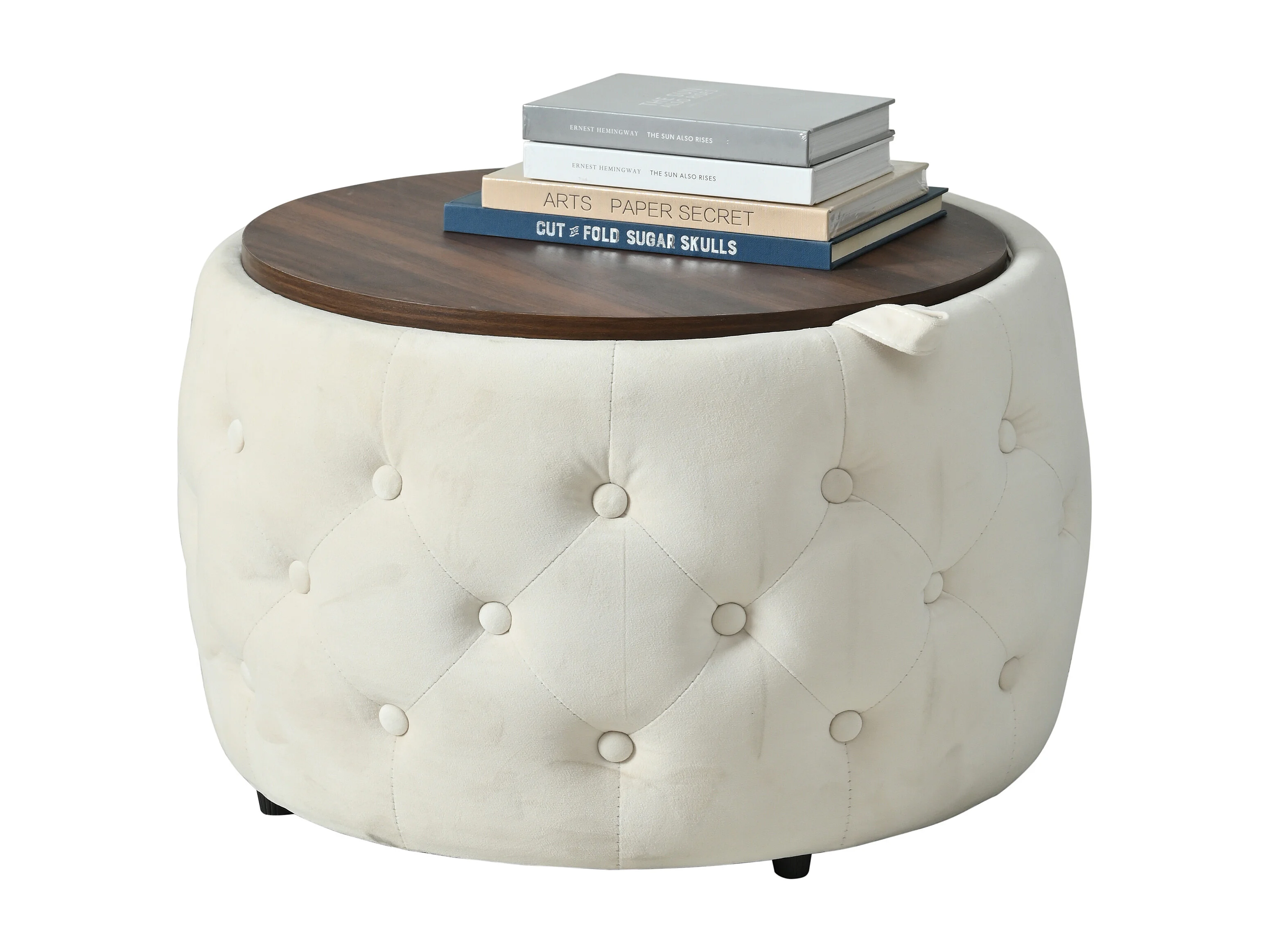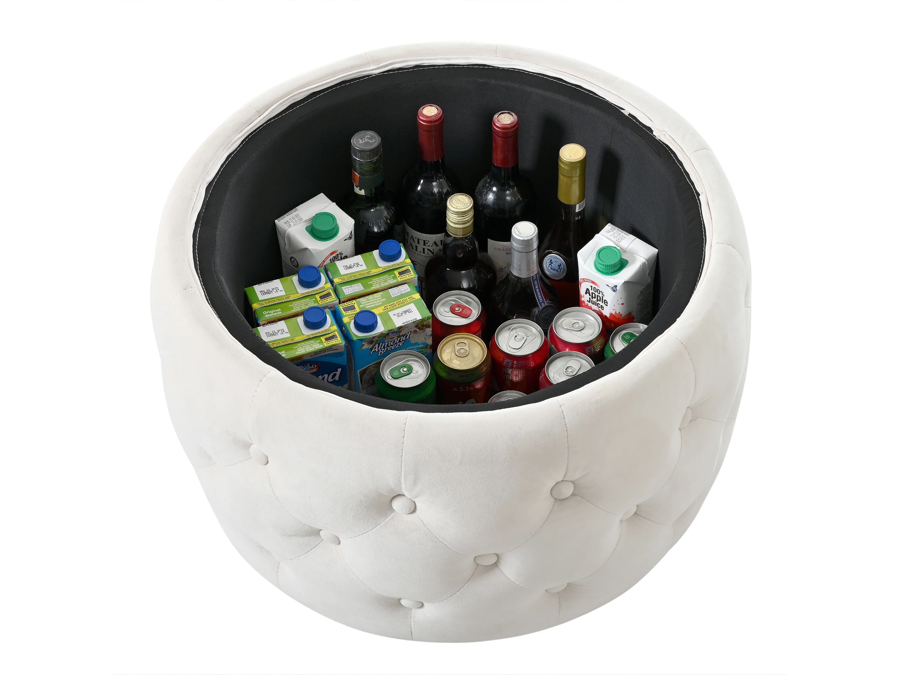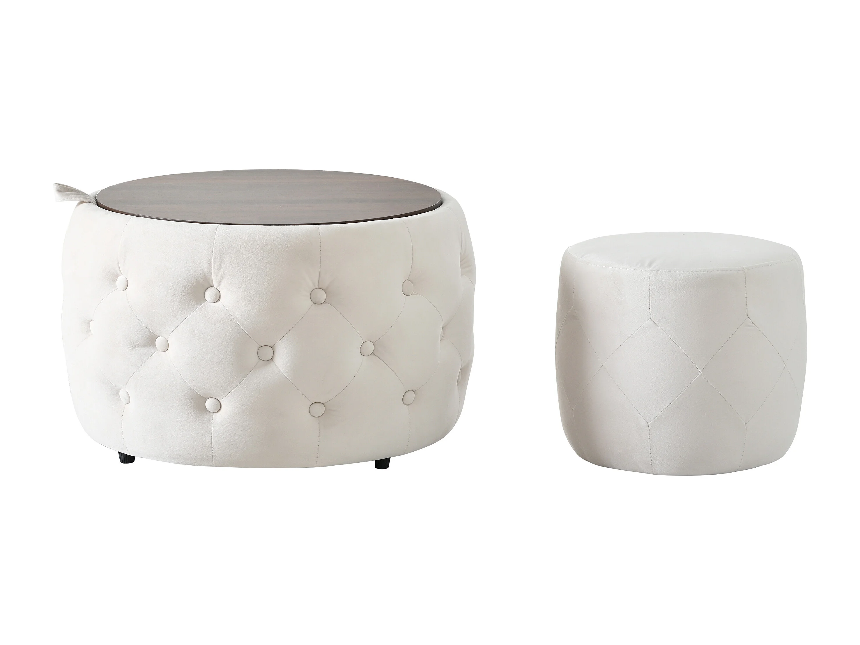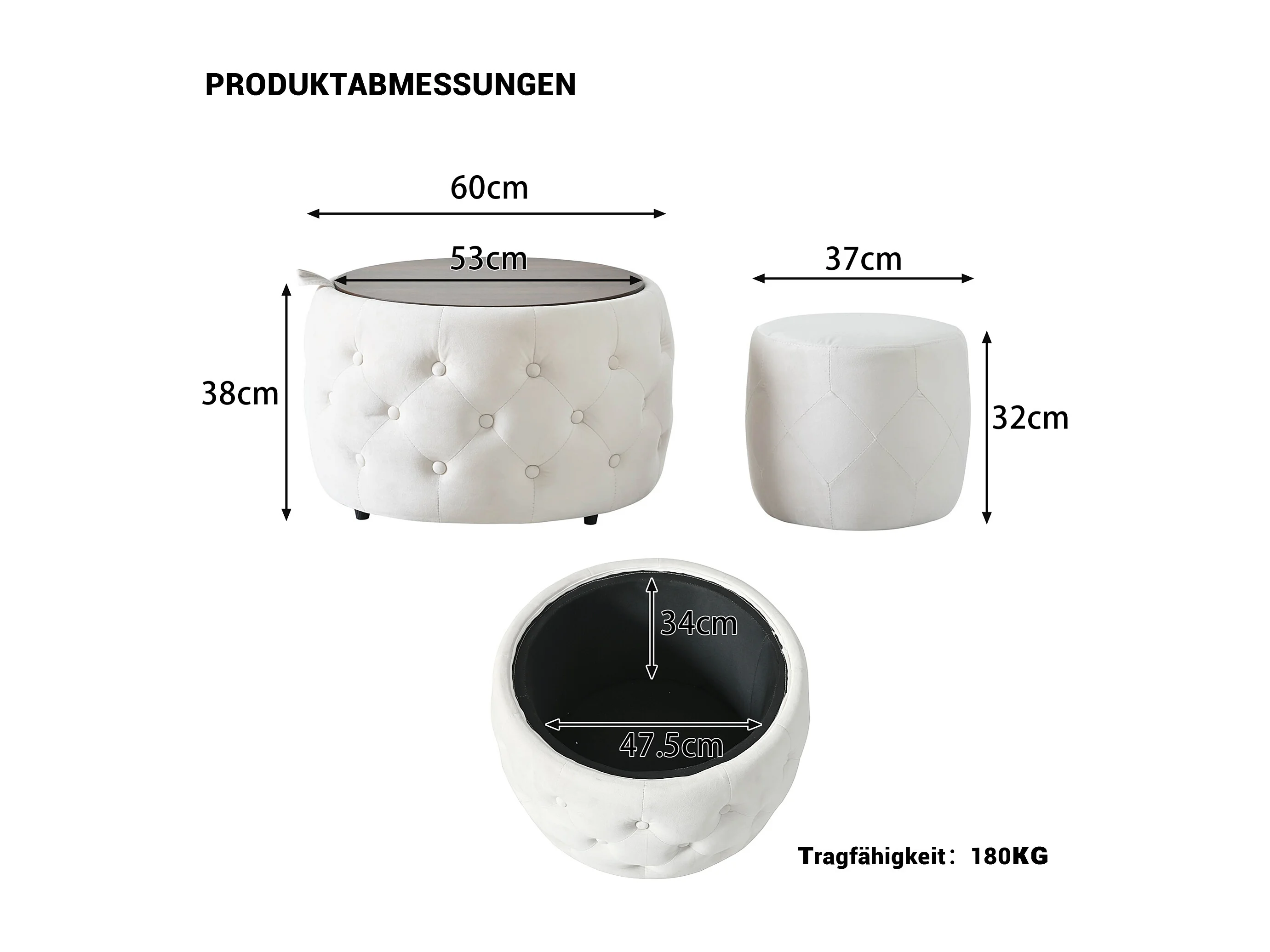 Pouf coffre rond en tissu velours avec rangement – Tabouret multifonction beige 60 cm +37 cm