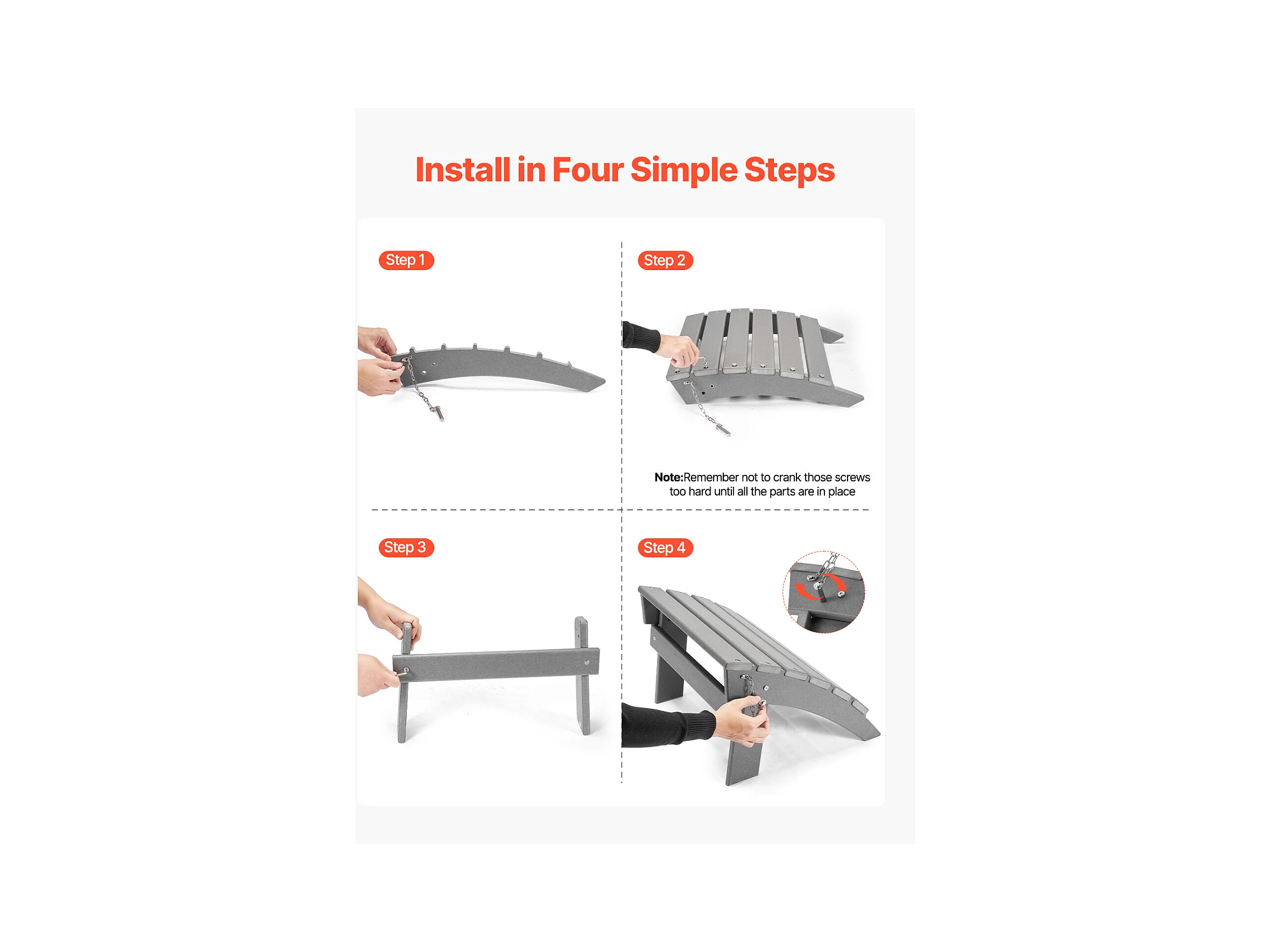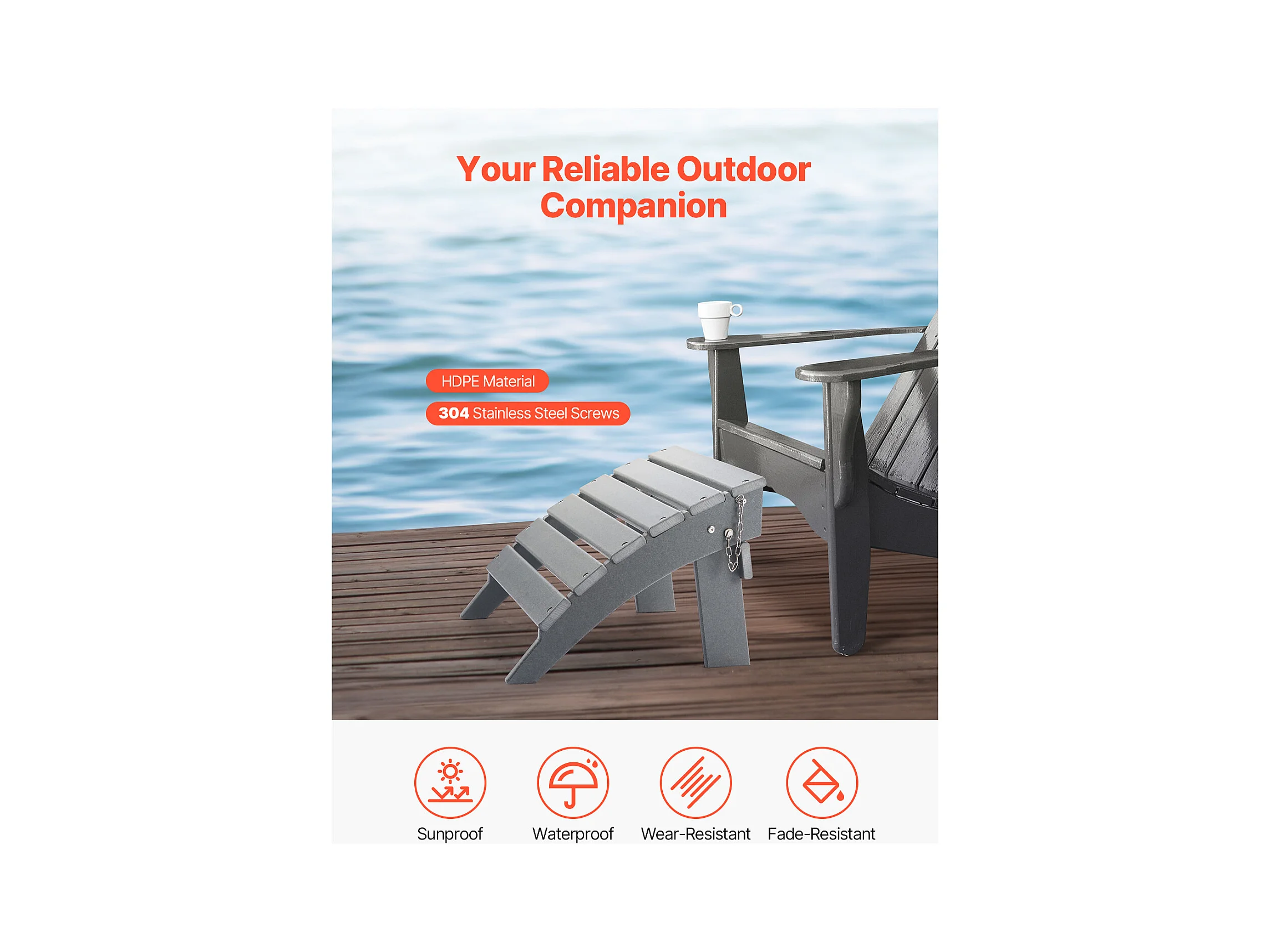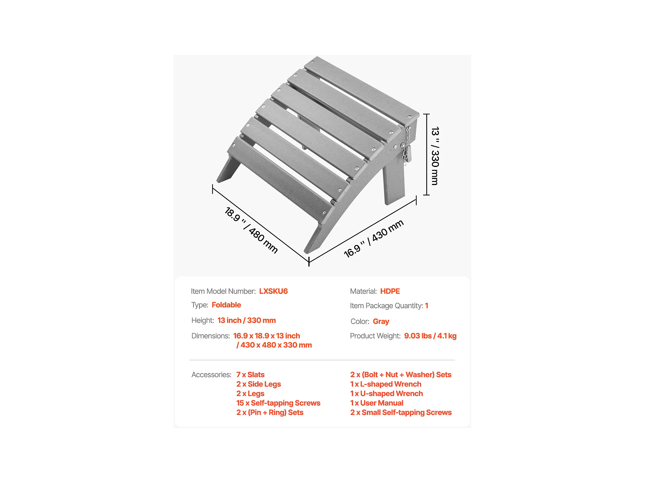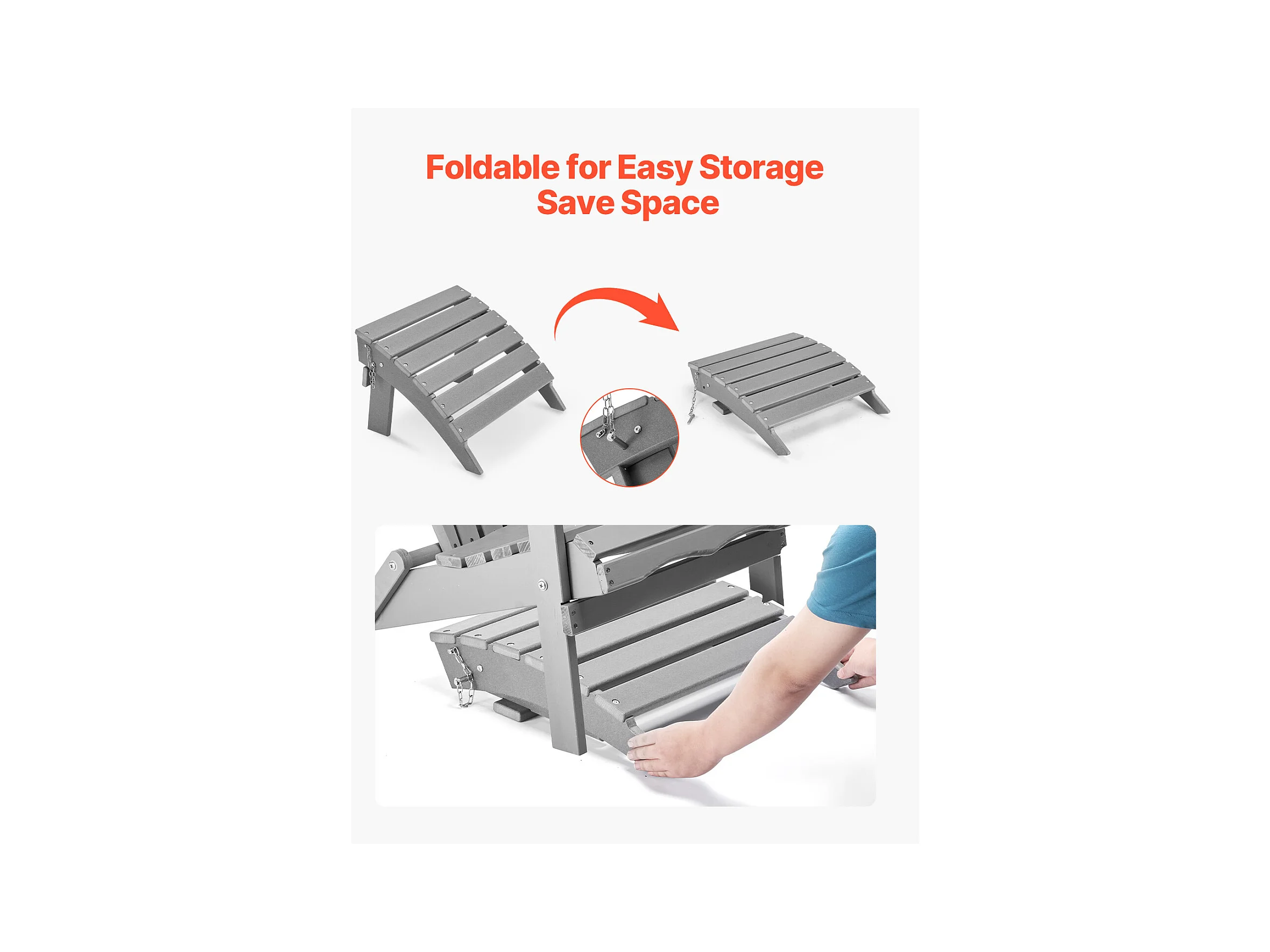Pouf de Jardin, SucceBuy Pouf Adirondack Pliable en PEHD de 43 x 48 x 33 cm, Gris