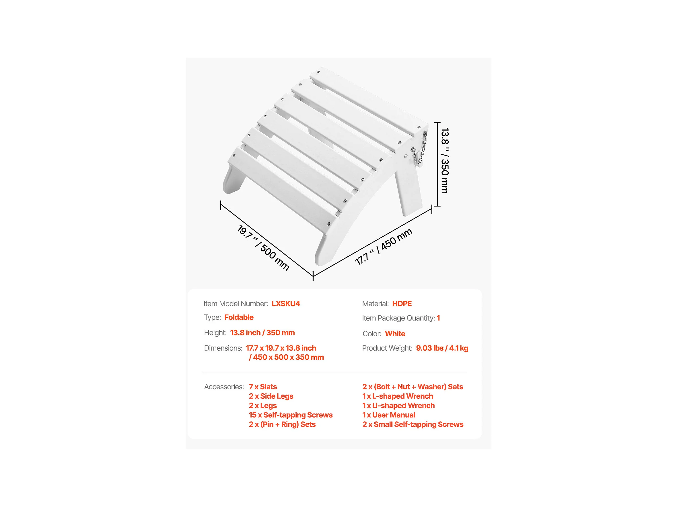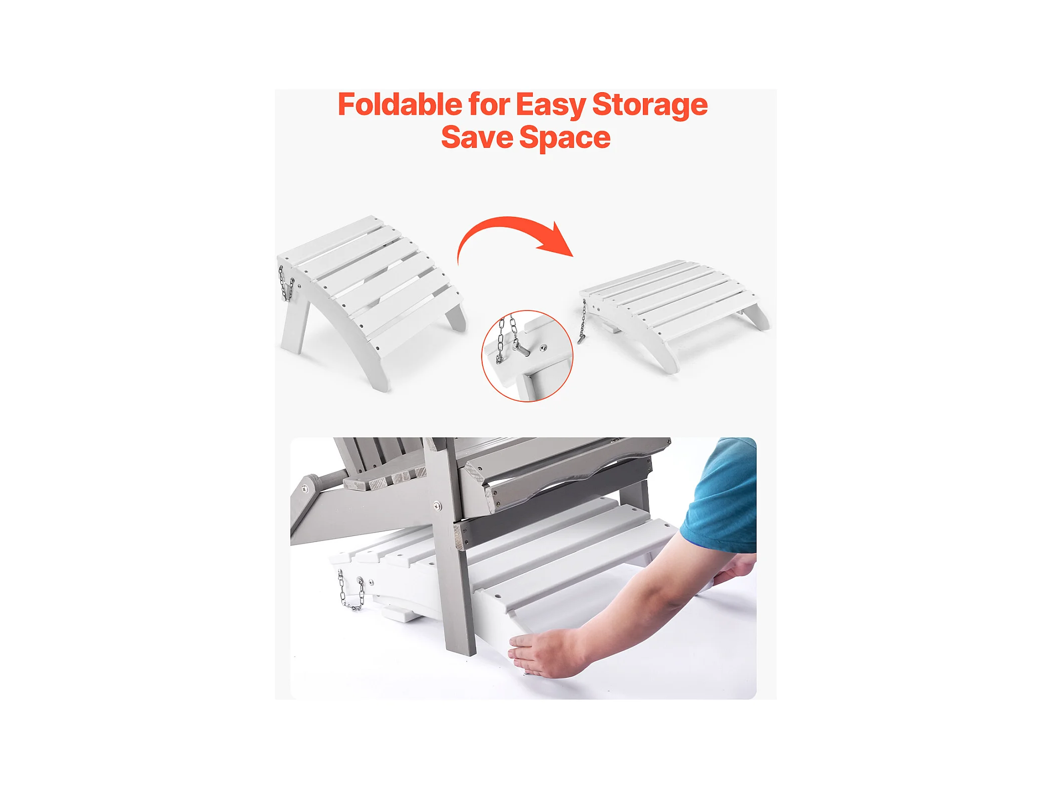 Pouf de Jardin, SucceBuy Pouf Adirondack Pliable en PEHD de 45 x 50 x 35 cm, Blanc