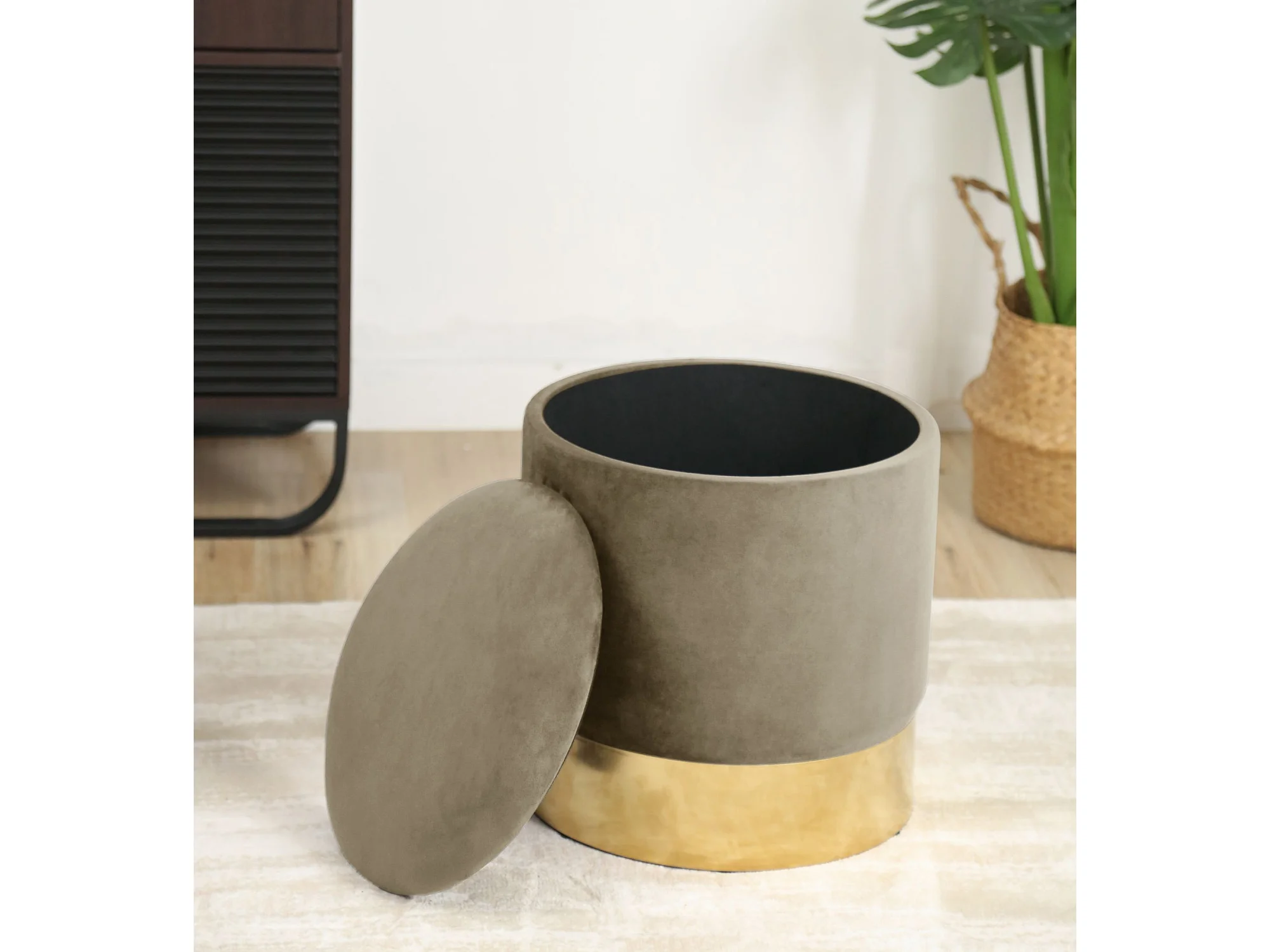 Pouf de Rangement avec Couvercle AKORD GOLDEN velour colour Beige hauteur 40 cm