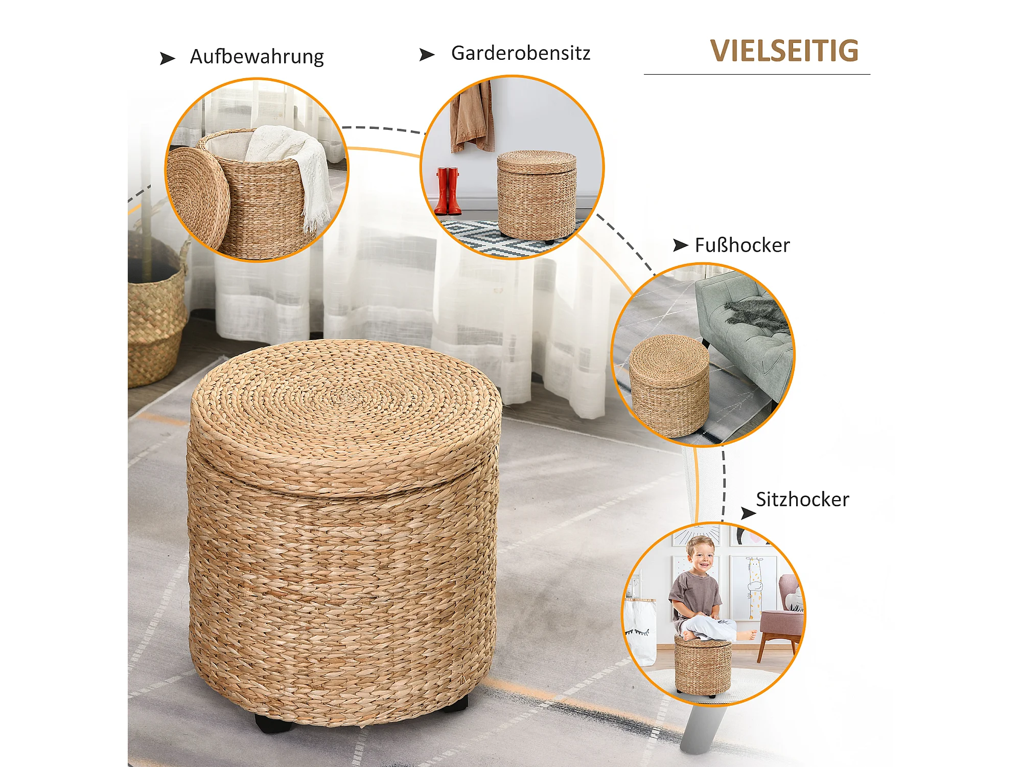 Pouf de rangement avec couvercle amovible, en rotin, kaki (Ø43x43 cm)