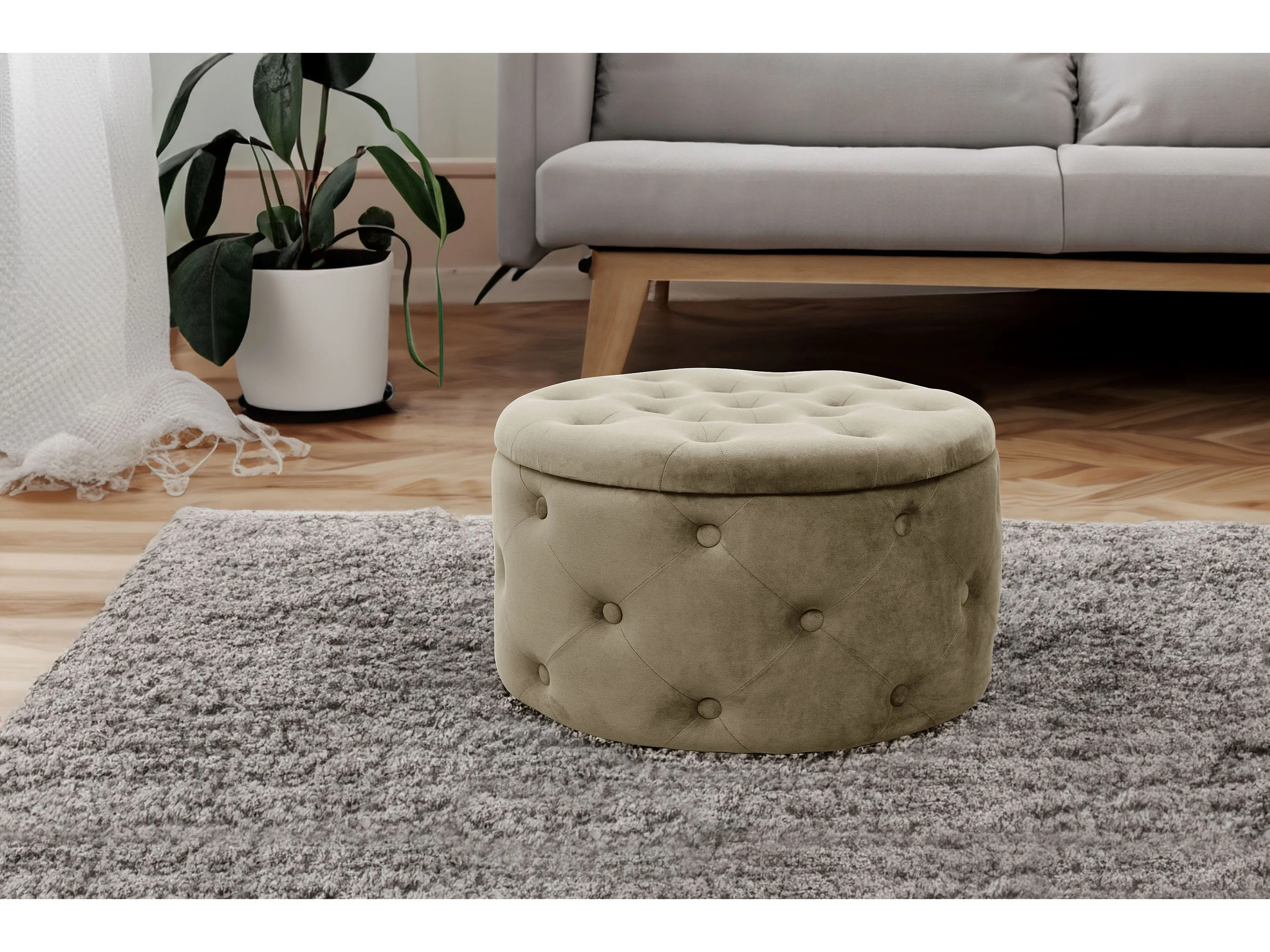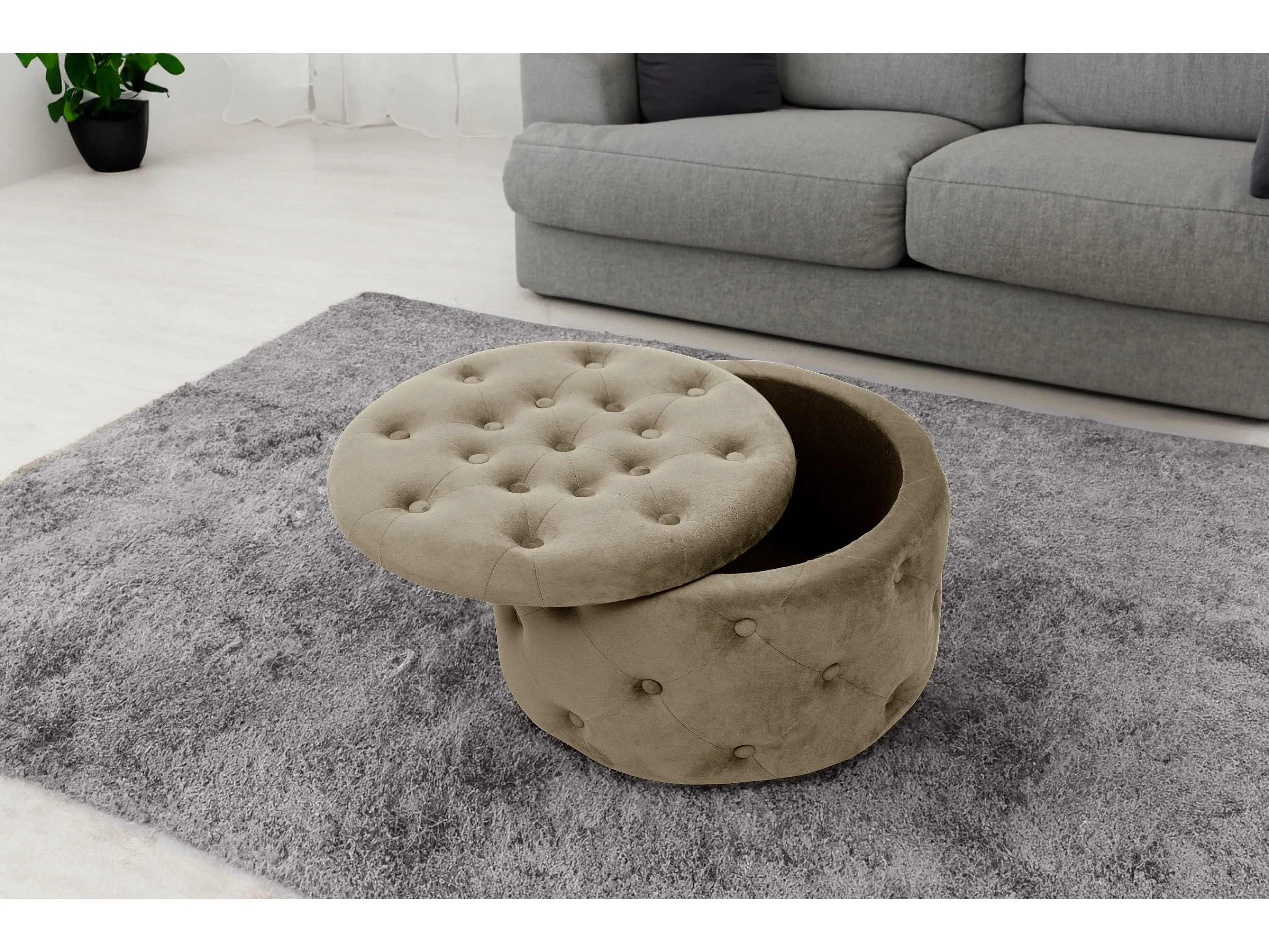 Pouf de Rangement avec Couvercle matelassé AKORD ALIA velour colour Beige hauteur 30 cm