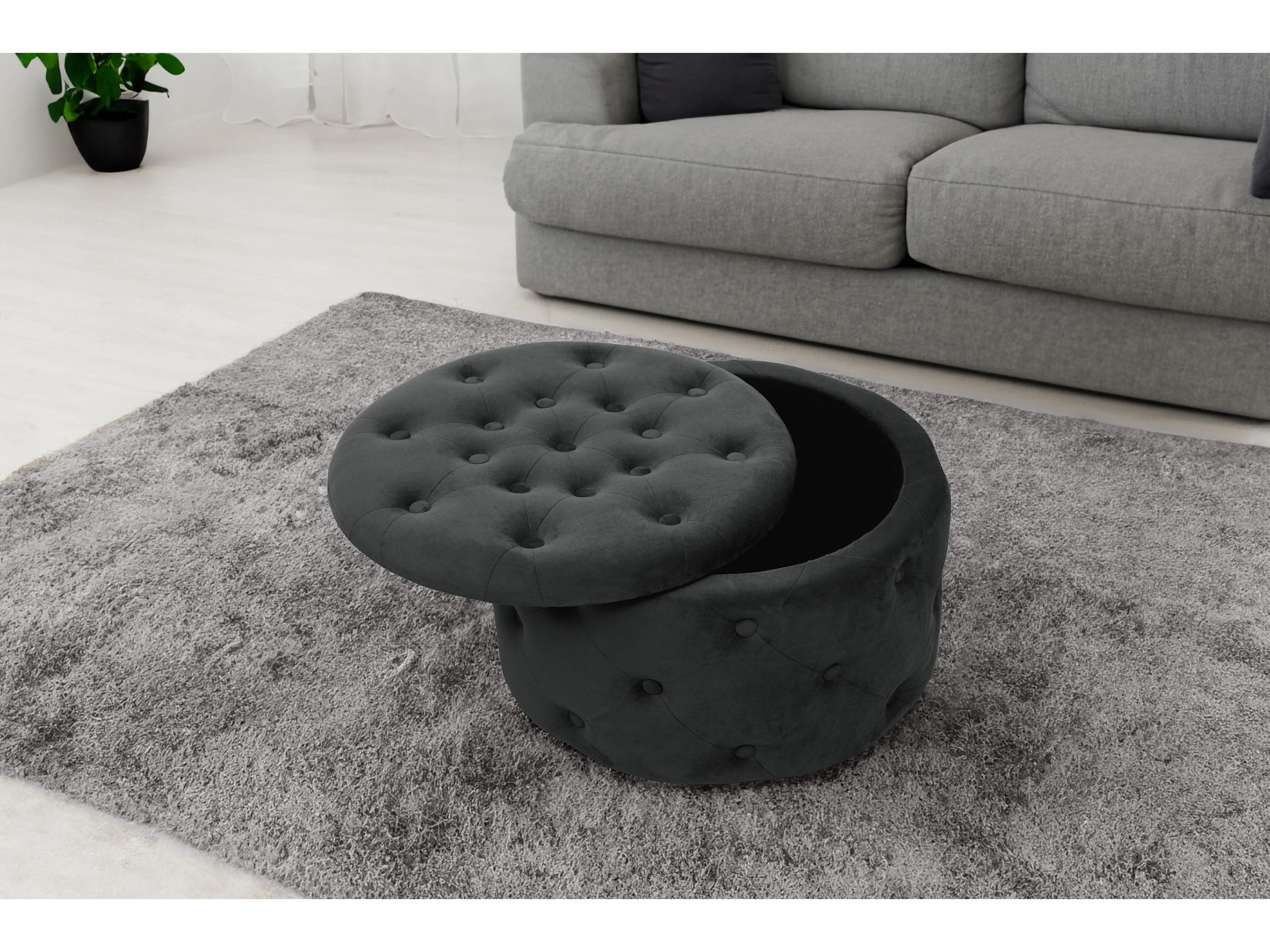Pouf de Rangement avec Couvercle matelassé AKORD ALIA velour colour Noir hauteur 30 cm