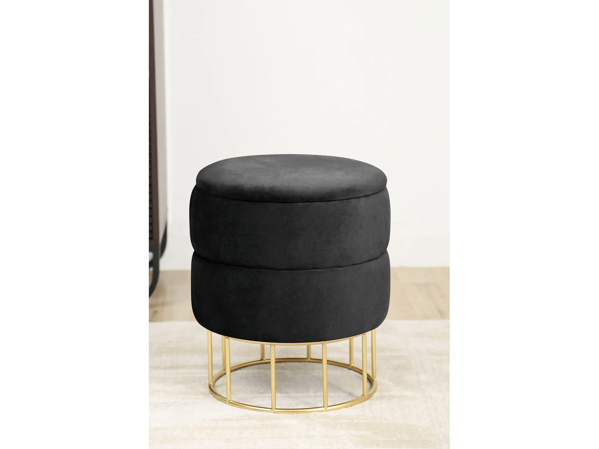 Pouf de Rangement avec Couvercle matelassé AKORD ELZA velour colour Noir hauteur 42 cm