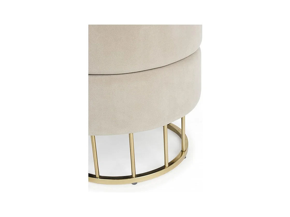 Pouf effet velours couleur tourterelle avec bande dorée - LUCILLA