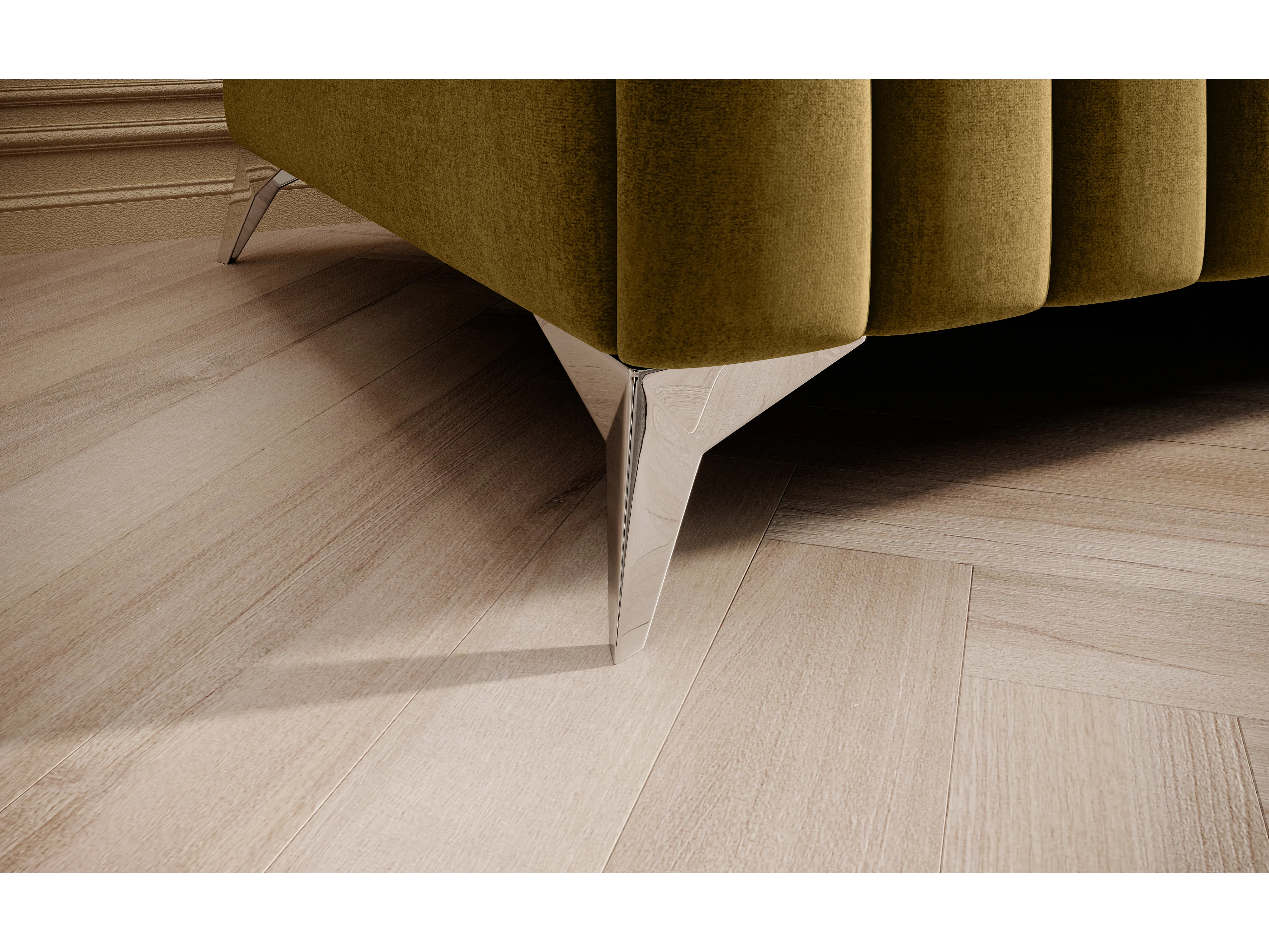 Pouf design velours avec pieds en acier chromé LOZA-Jaune moutarde