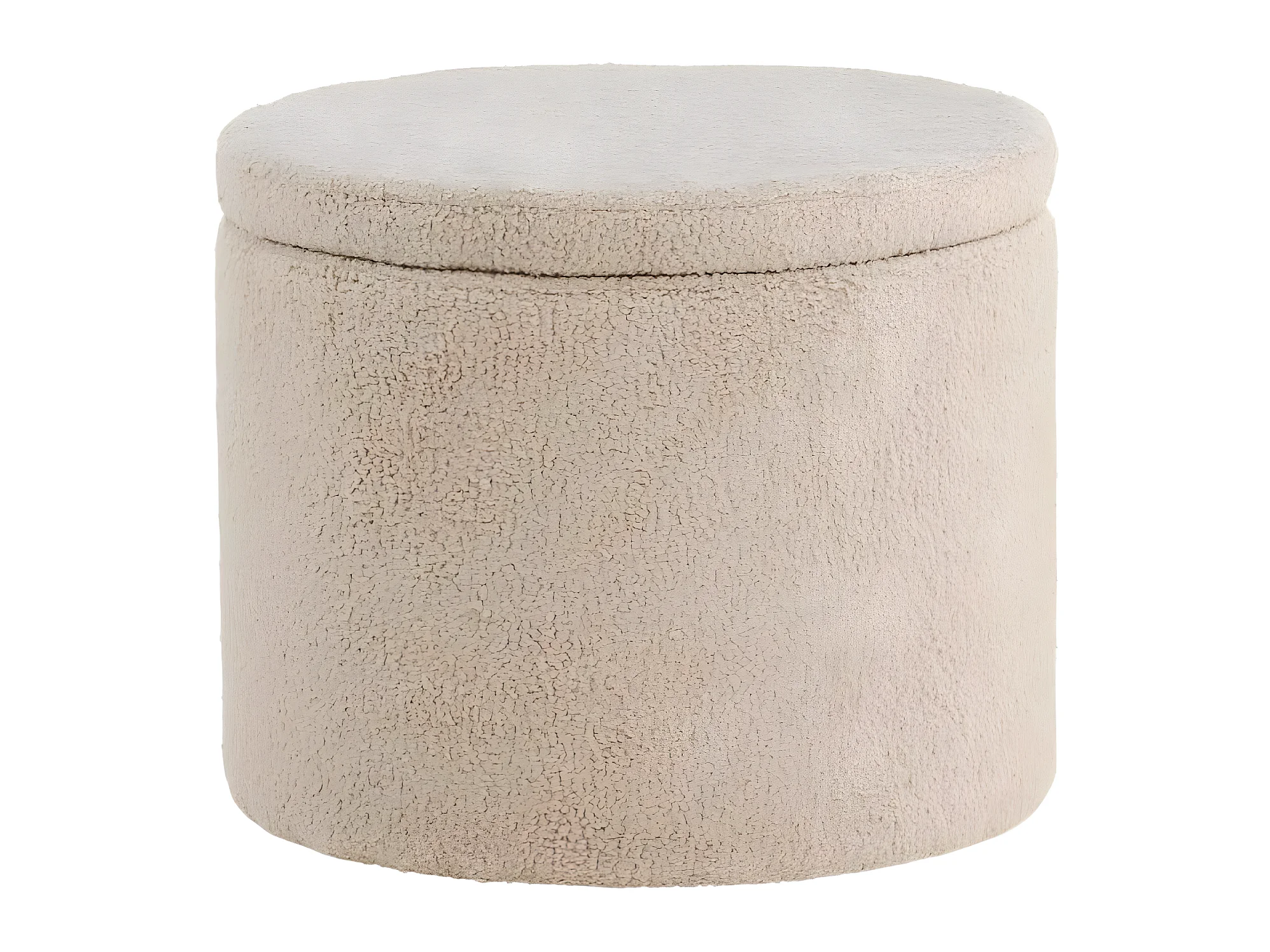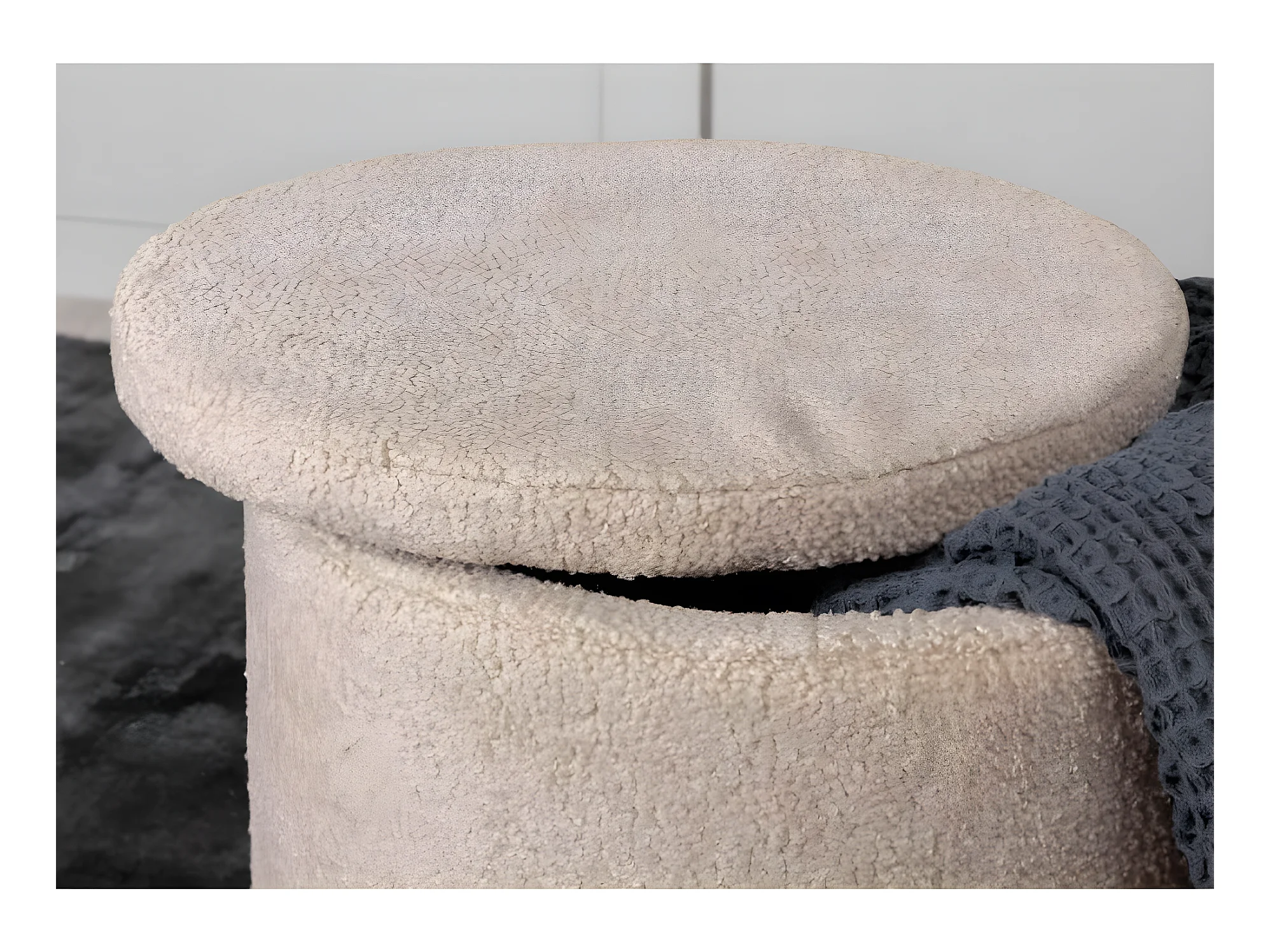 Brooklyn - Pouf coffre rond en tissu bouclette ø44cm - Beige