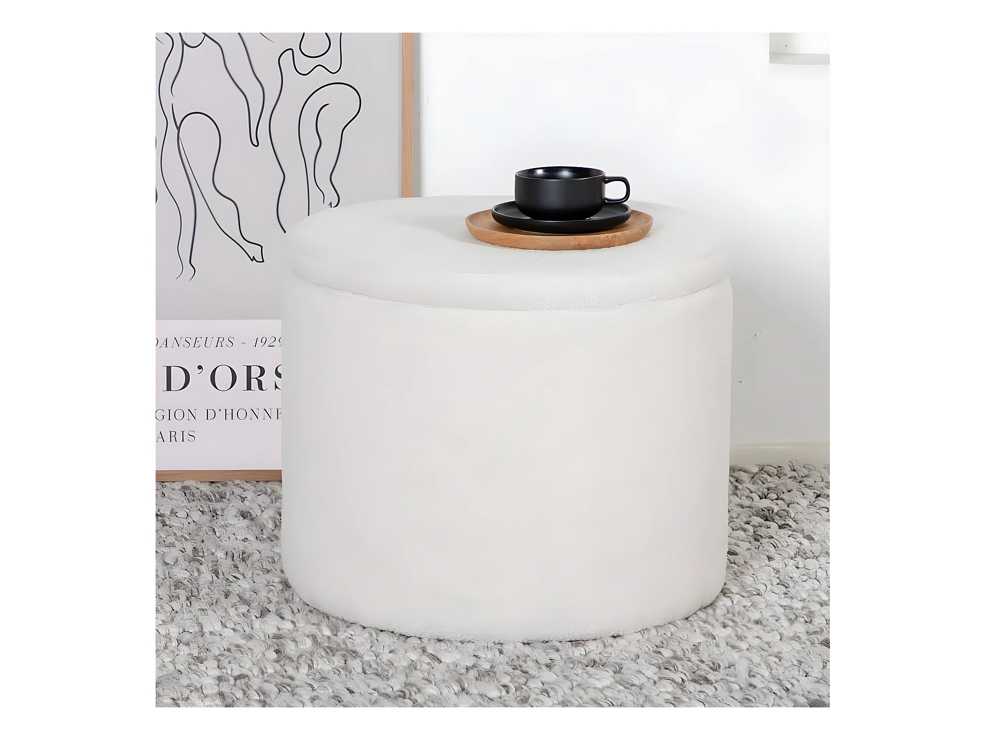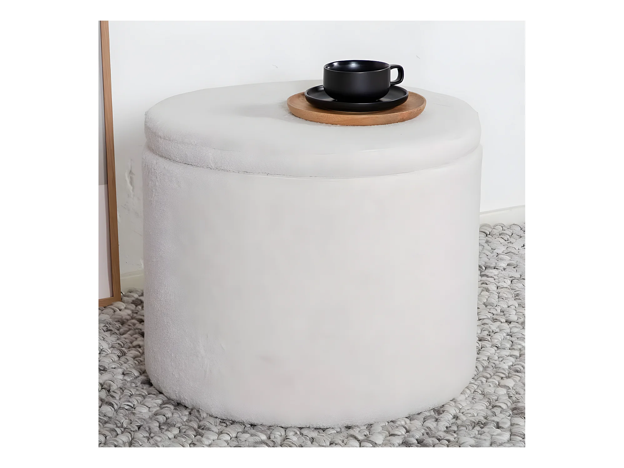 Medford - Pouf avec rangement en tissu bouclette - Écru