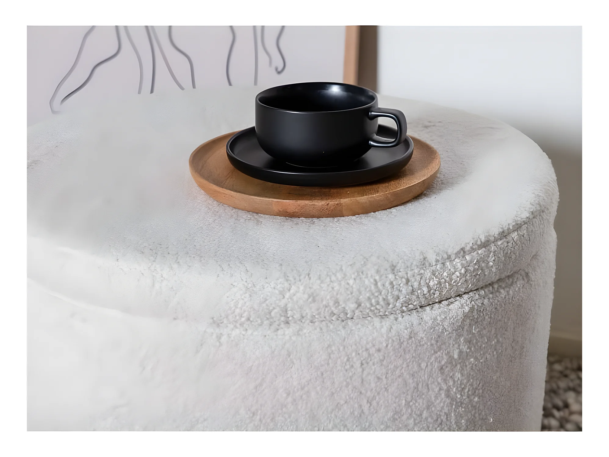 Pouf en tissu bouclette - blanc - MANAO