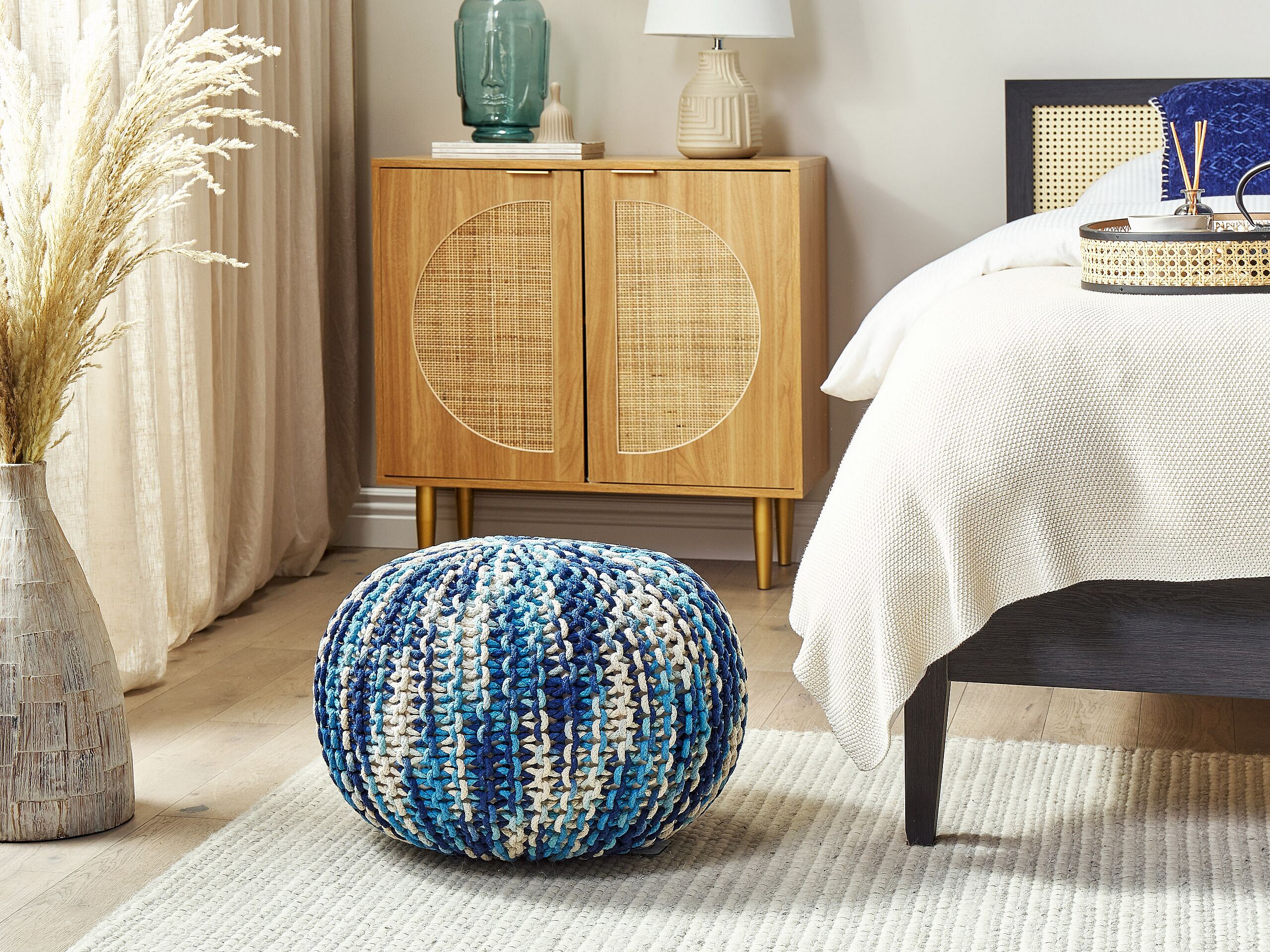 Pouf SANAWAN Soie artificielle Bleu foncé
