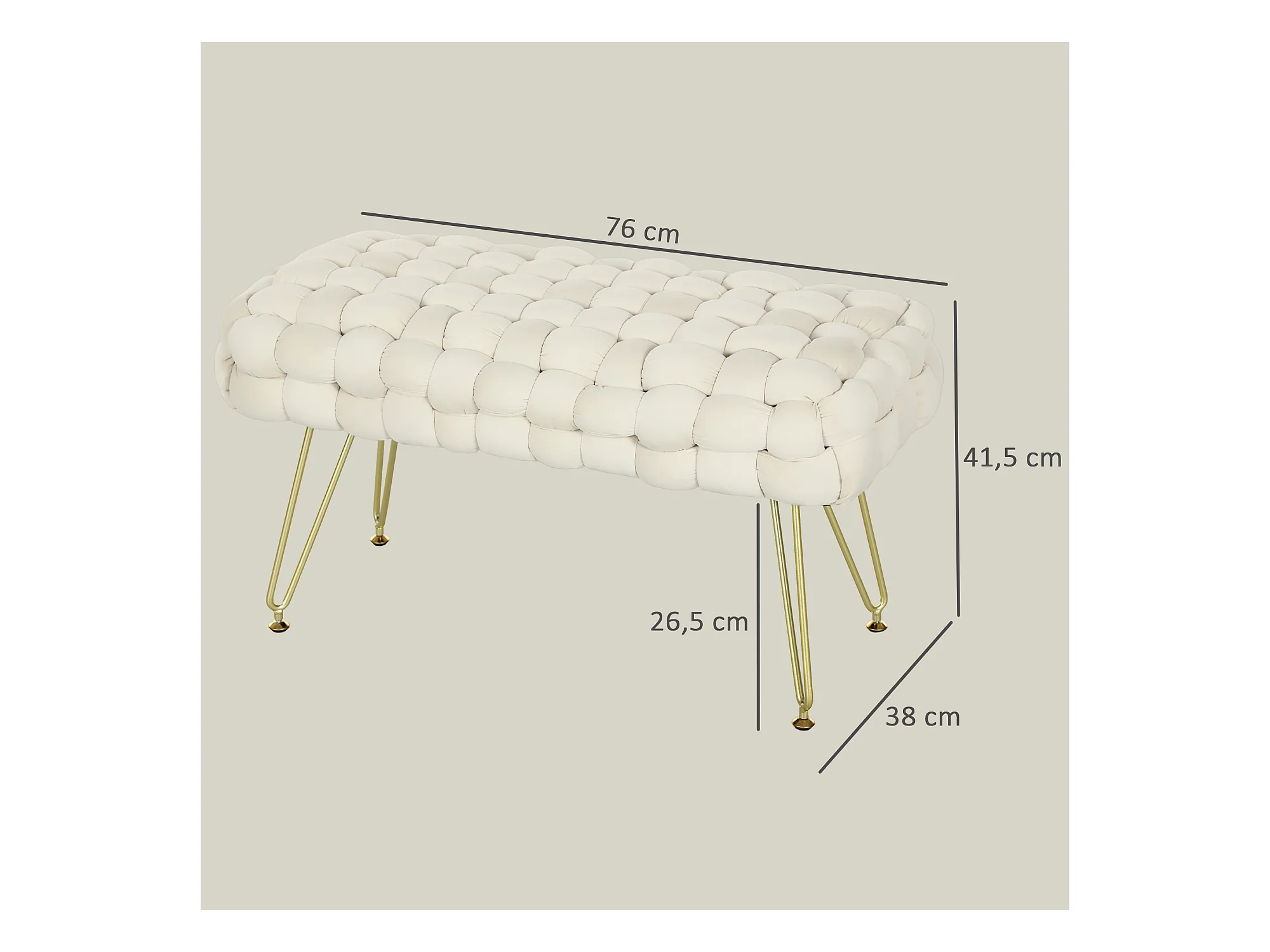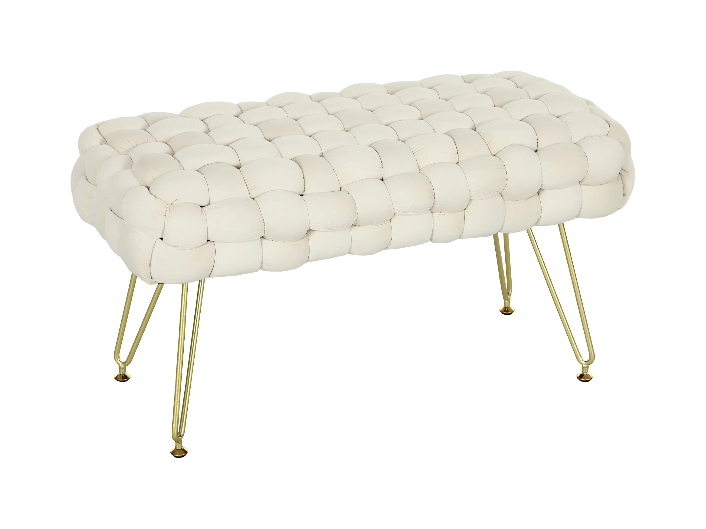 Pouf en velours avec pieds métalliques, confortable et stable, crème (76x38x41.5cm)