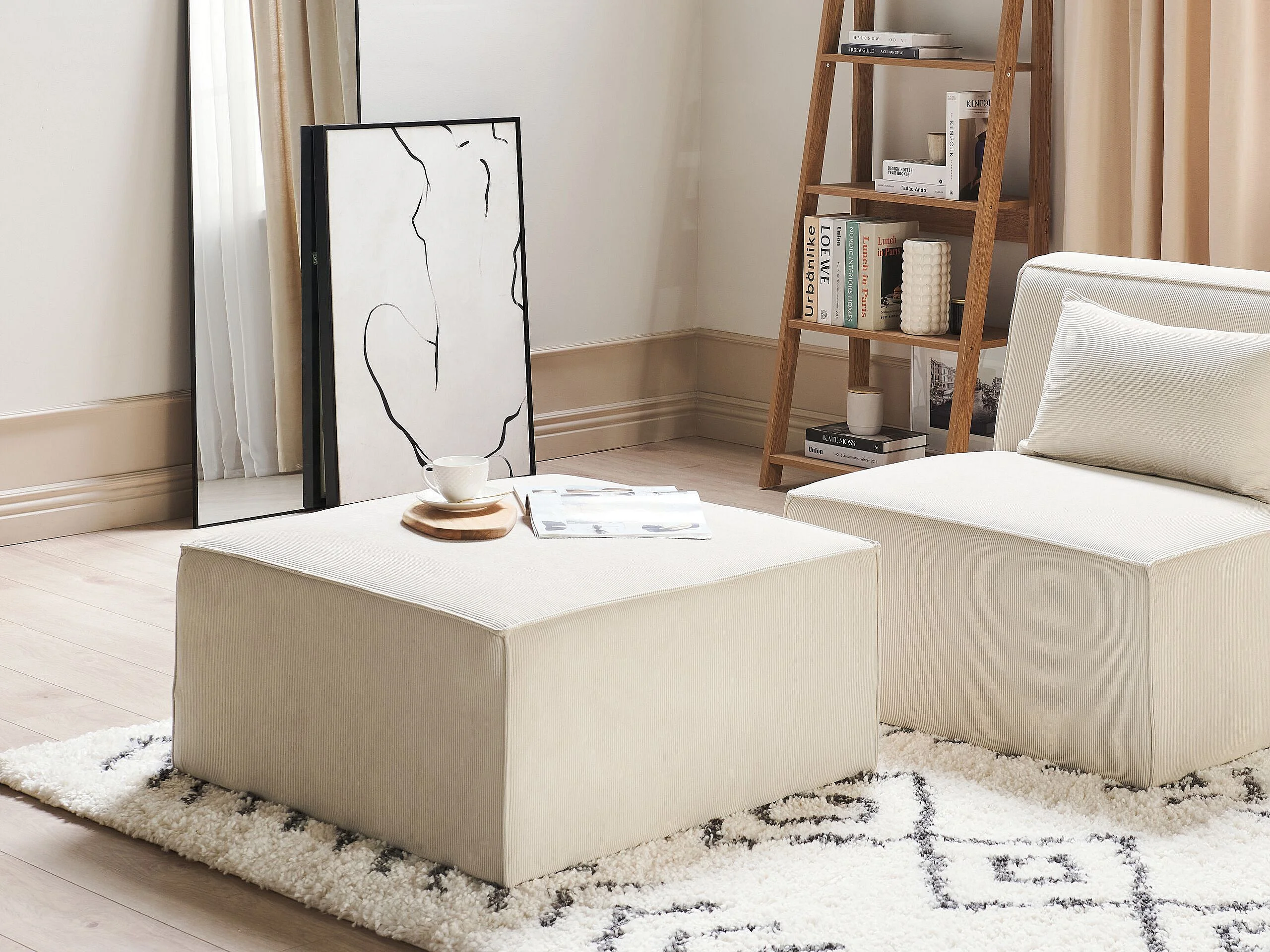 Ottoman LEMVIG Velours côtelé Beige clair