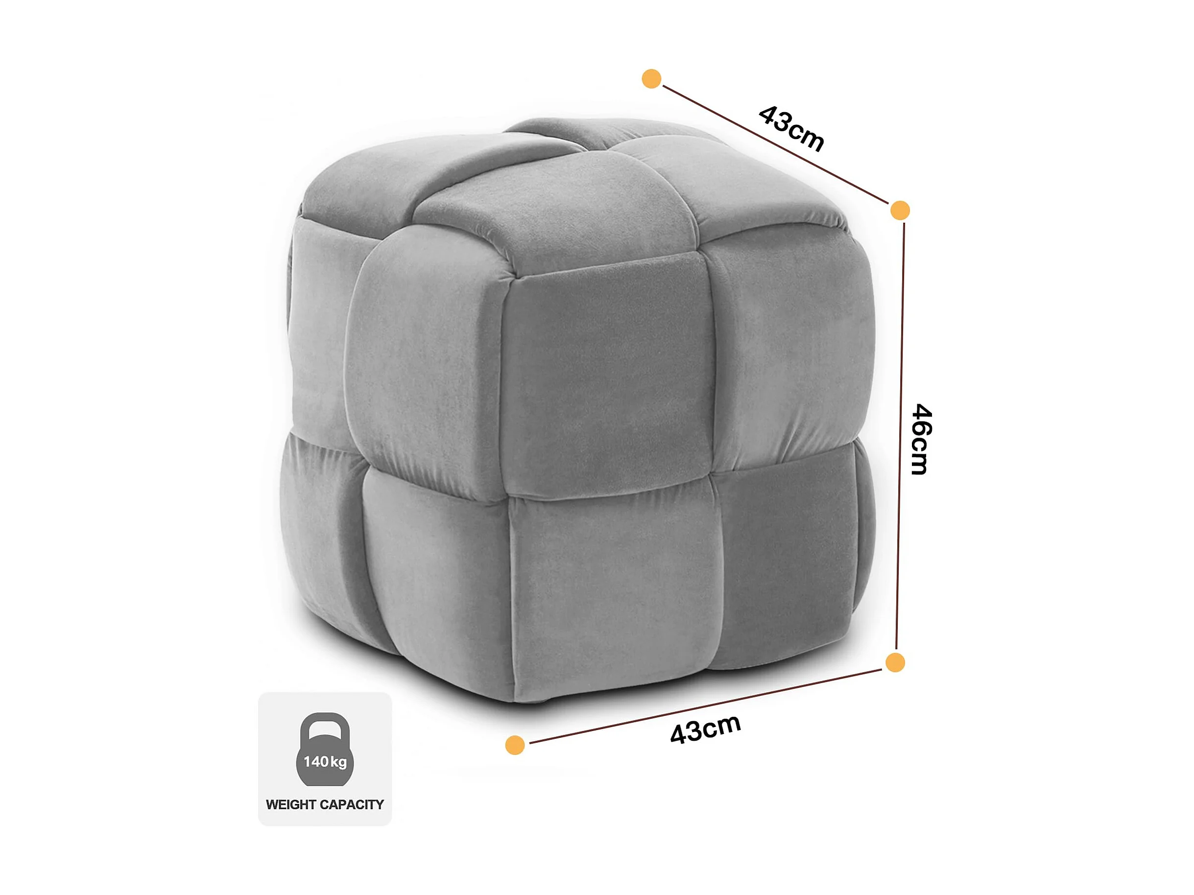 Pouf Ottoman en Velours Repose-Pieds Salon Tressé Tabouret Carrée de Maquillage Décorative Moderne 43 x 43 x 46 cm Charge Max 140 kg - Gris