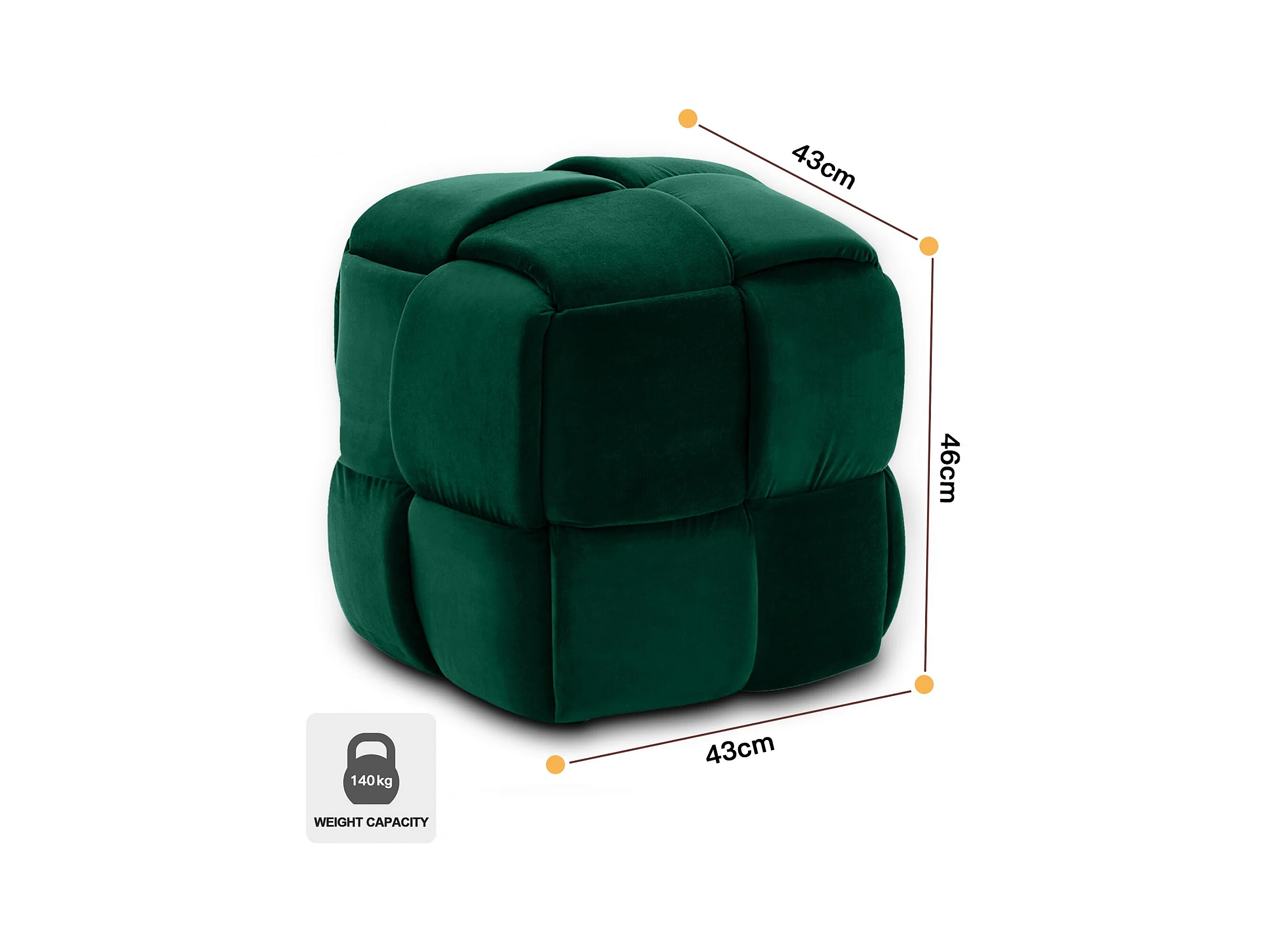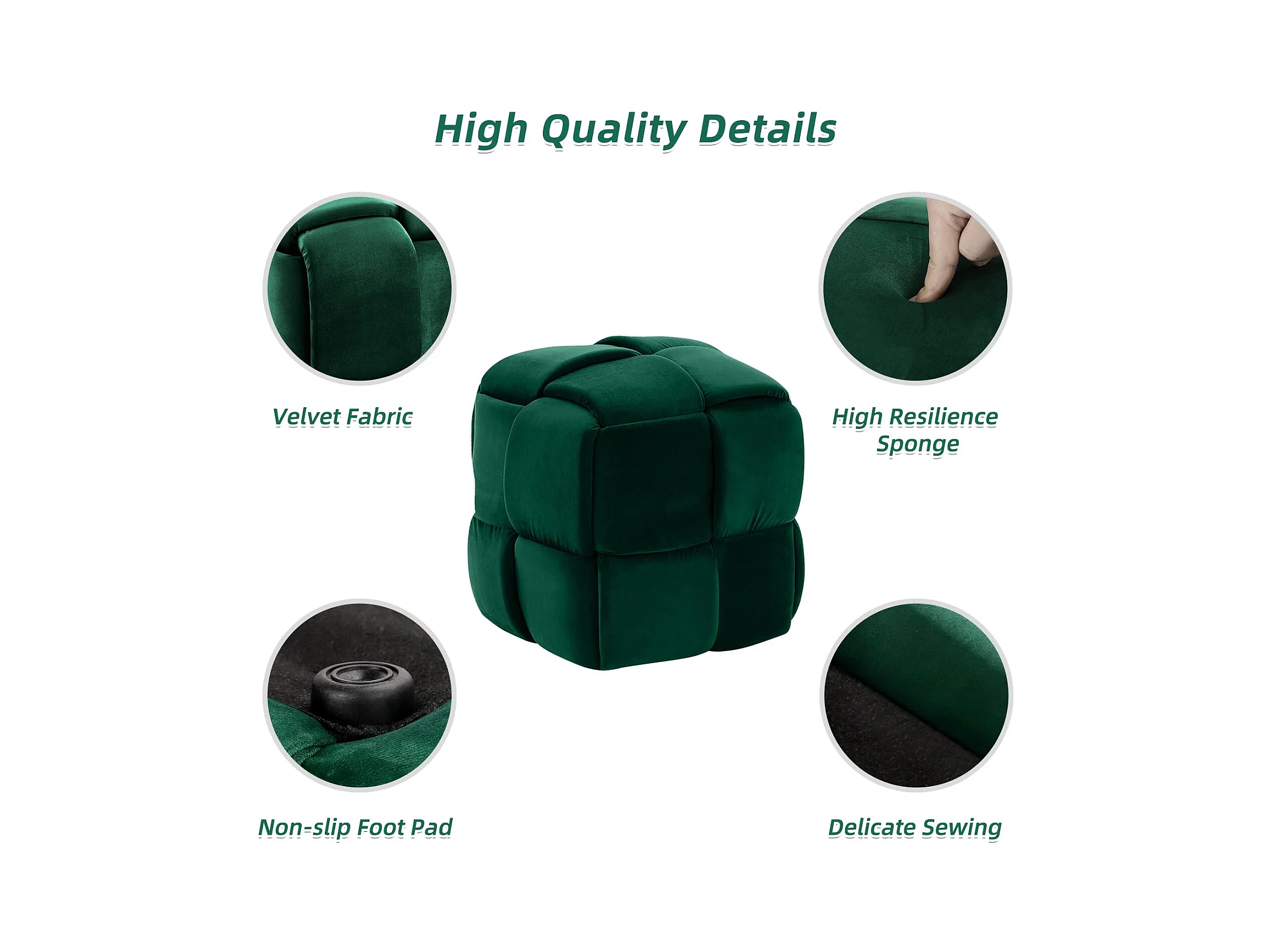 Pouf Ottoman en Velours Repose-Pieds Salon Tressé Tabouret Carrée de Maquillage Décorative Moderne 43 x 43 x 46 cm Charge Max 140 kg - Vert