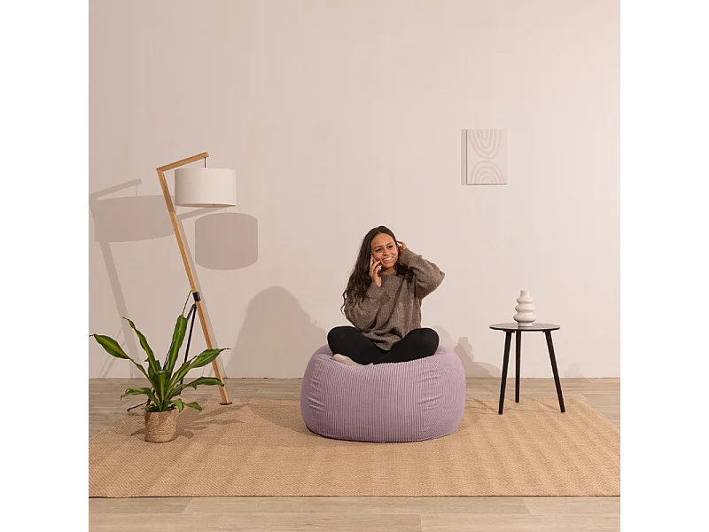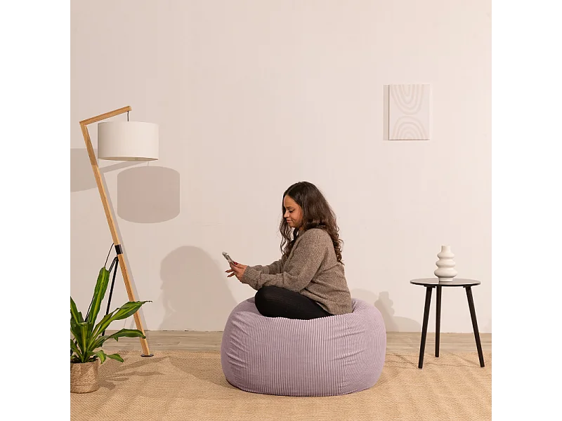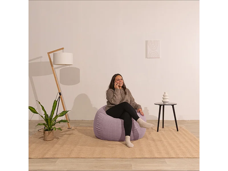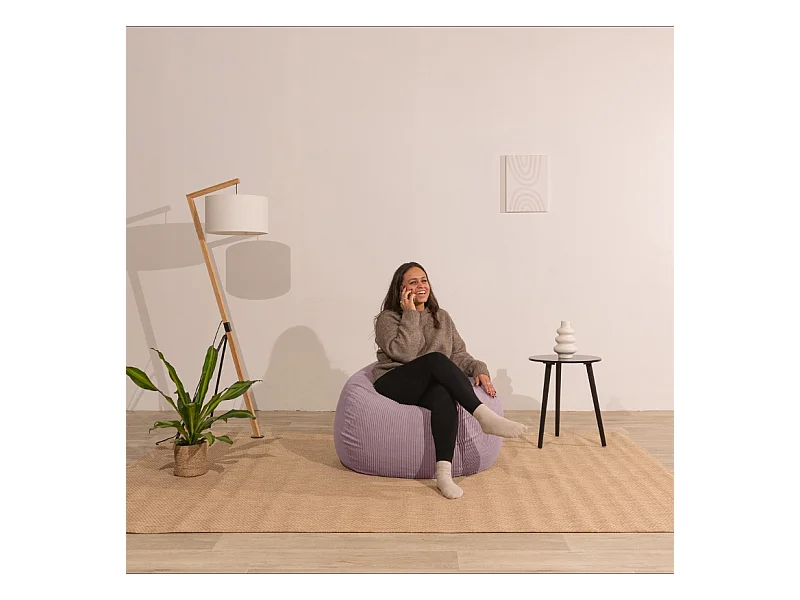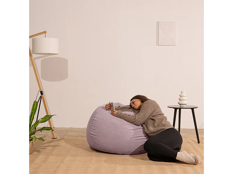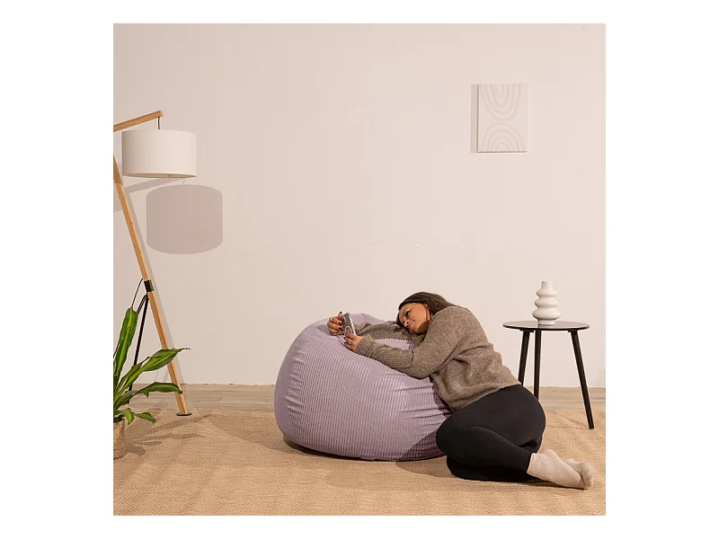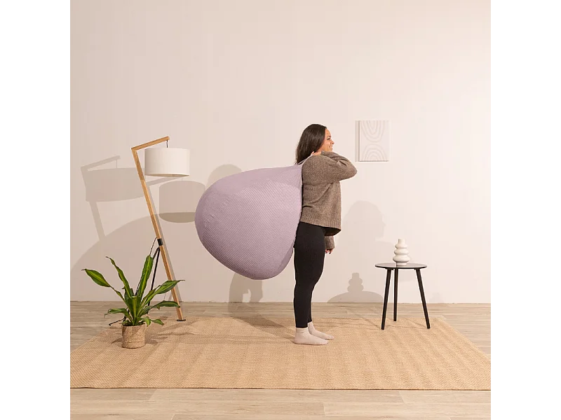 Pouf poire déhoussable velours côtelé - 120x100 cm violet parme