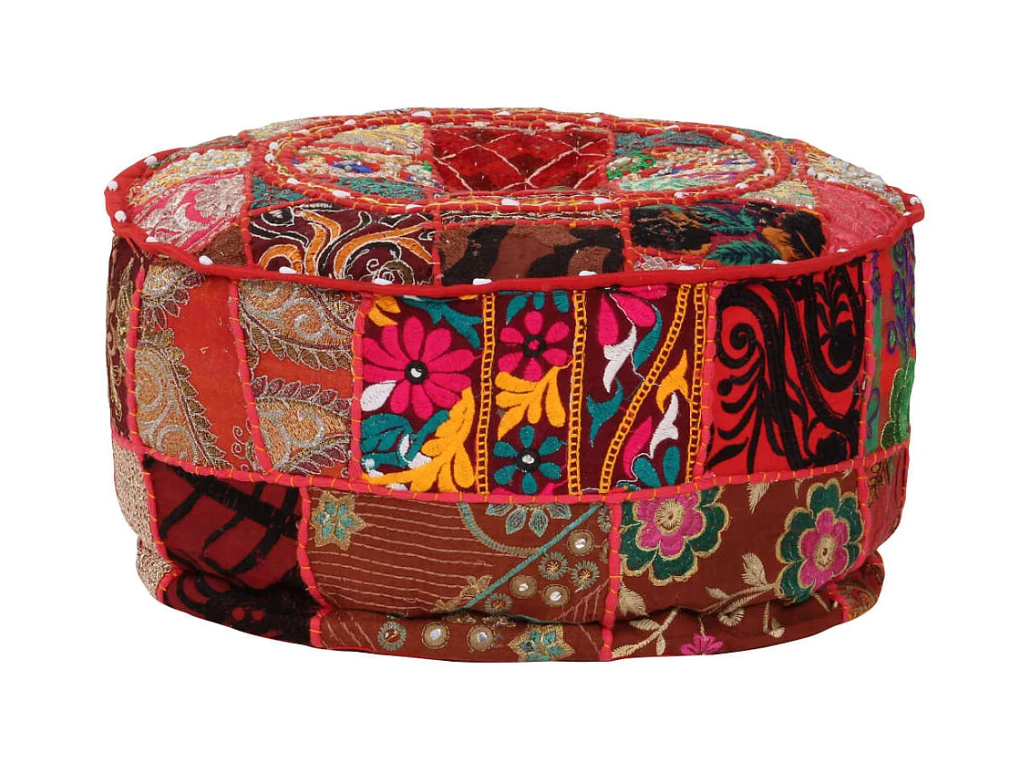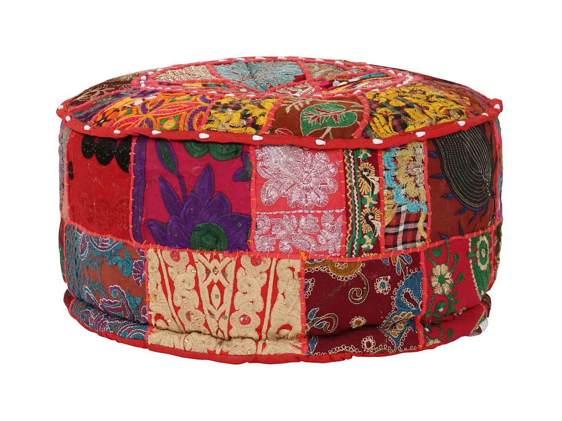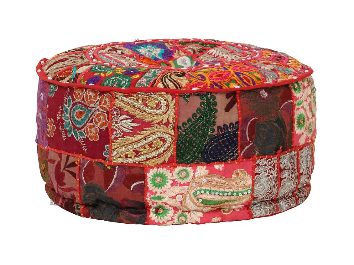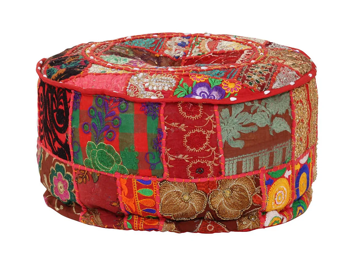 Pouf rond en coton fait à la main 40 x 20 cm Rouge
