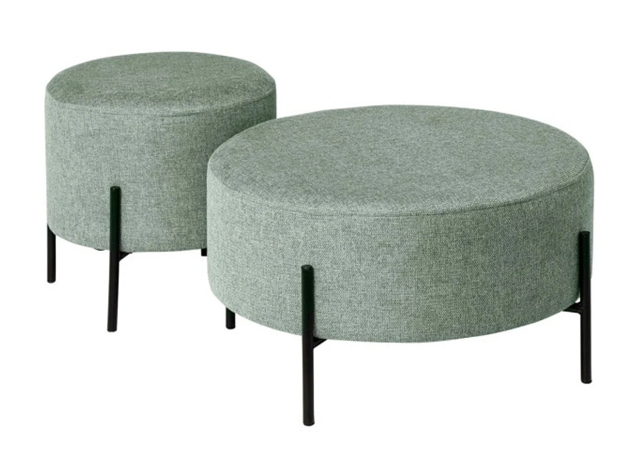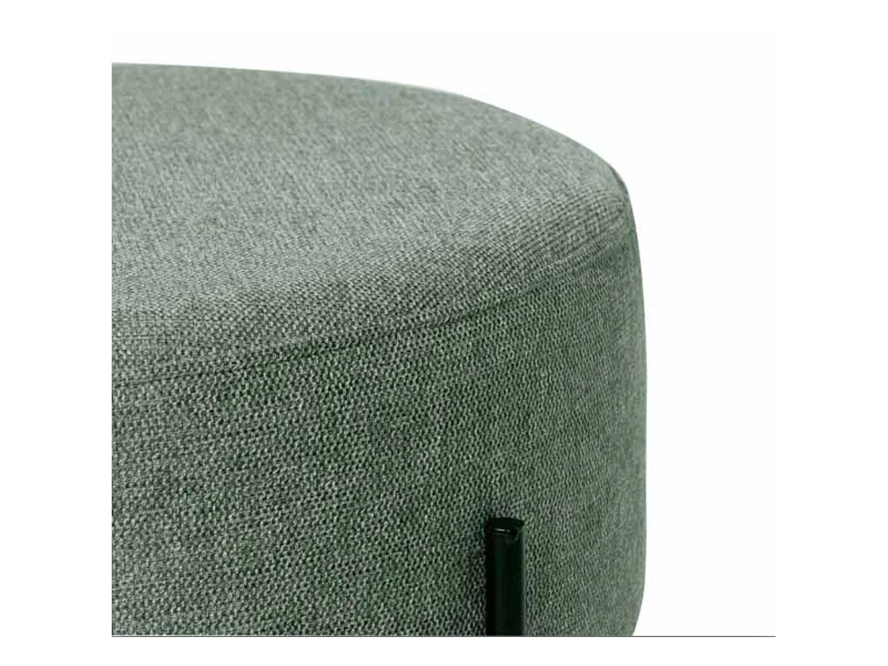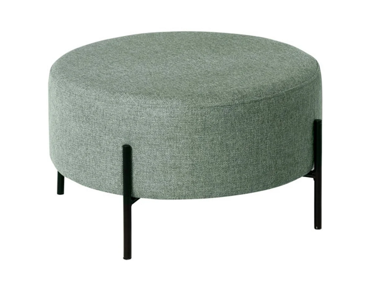 Pouf rond moderne en tissu avec pieds en métal noir Kamila-Couleur Vert amande-Diamètre 60 cm