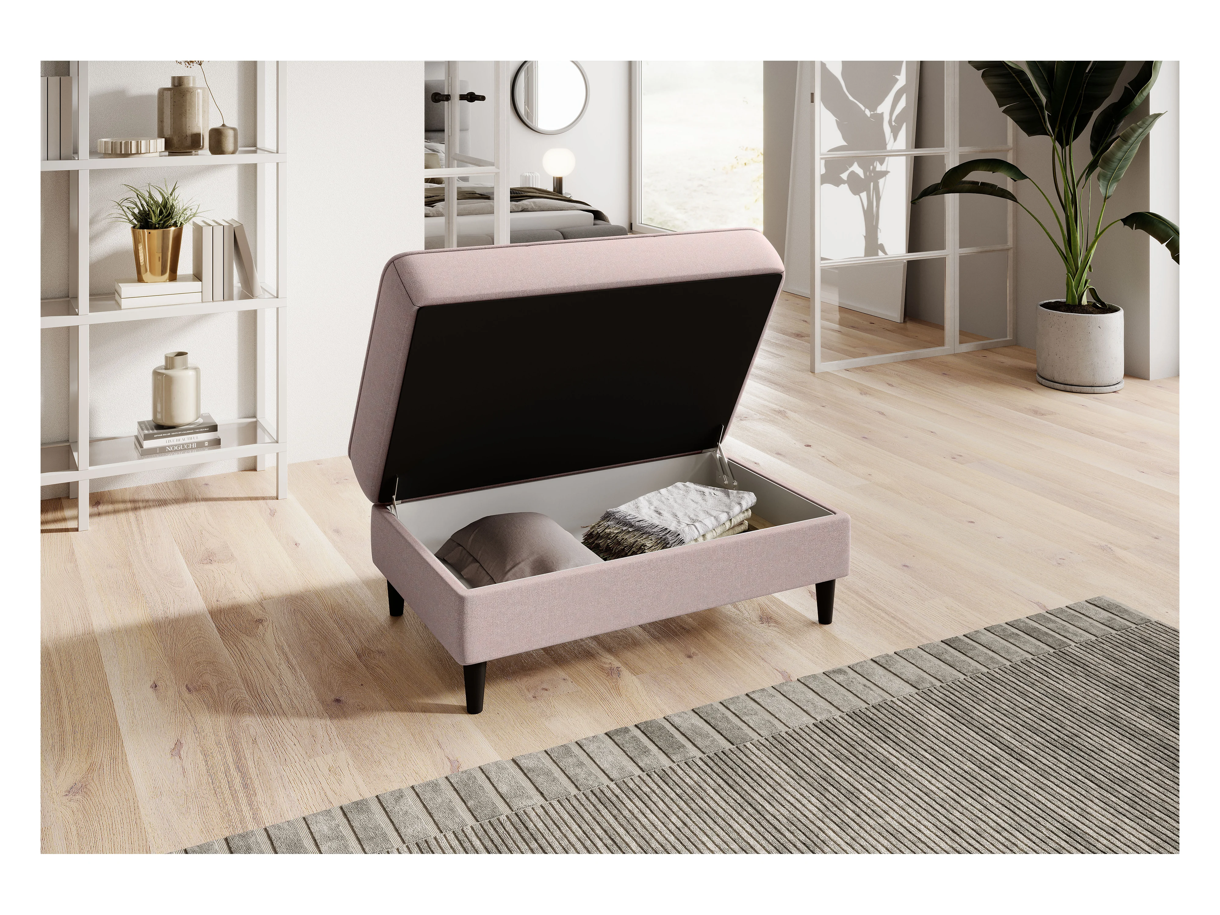 Pouf avec rangement en tissu BOZA-Rose clair