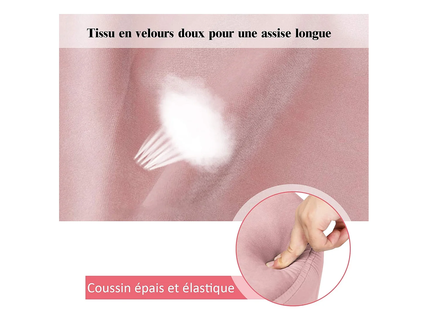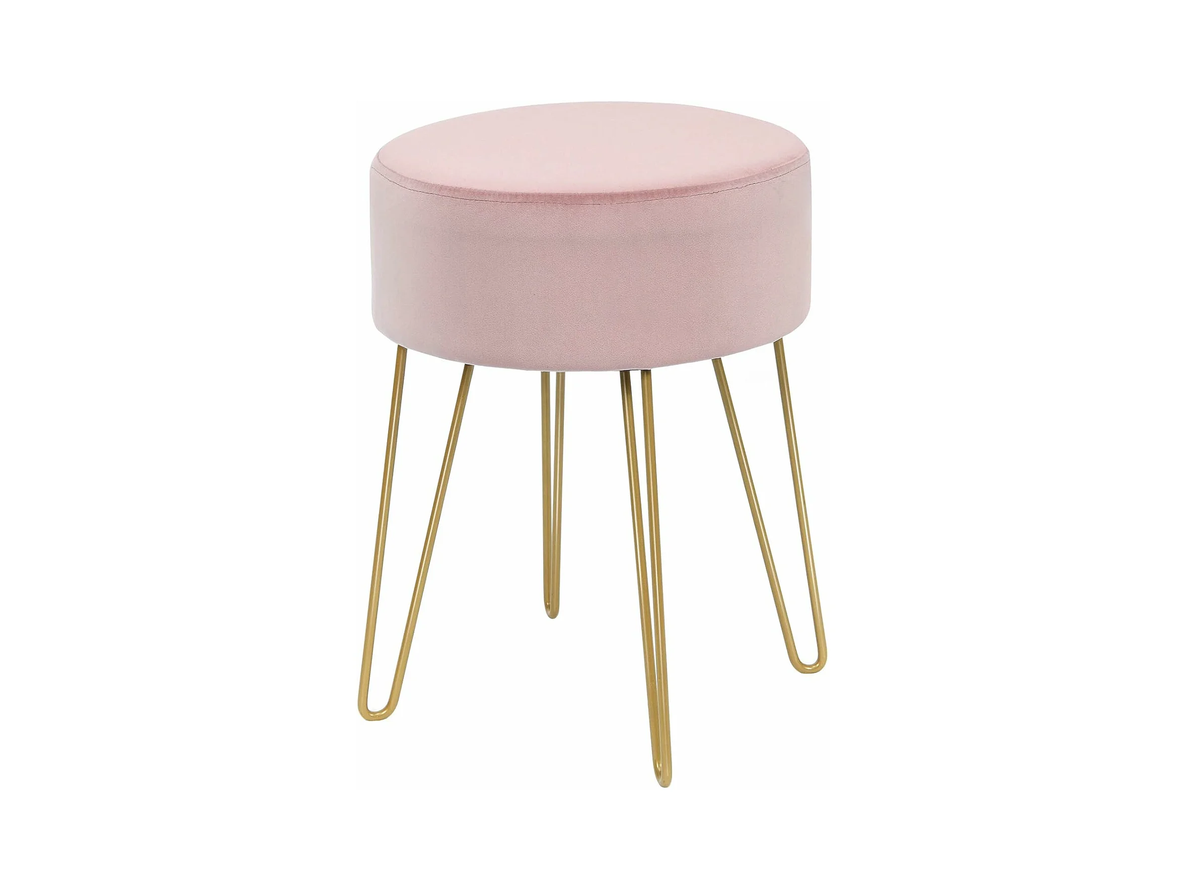 Tabouret bas avec pieds en bois Rose Velours FR75114